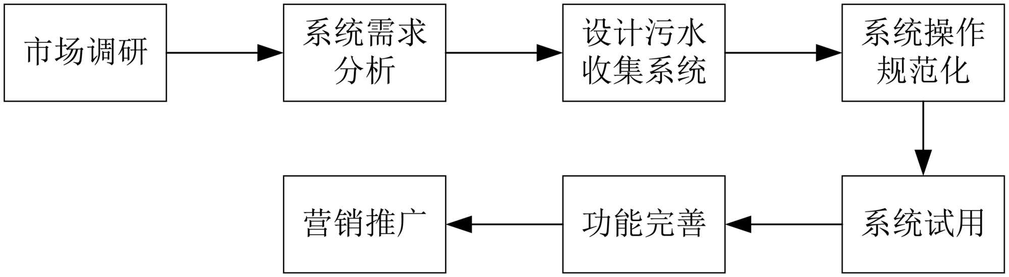 项目运行流程可分为三部分,前期对市场进行调研,根据调研结果分析污水收集系统的功能需求;中期团队成员根据调研结果设计污水收集系统,并将系统操作进行规范化处理;后期对污水收集系统进行推广使用,并通过使用反馈不断完善系统,而后针对系统建立营销推广策略[7] [8]。项目运行流程如图1所示。