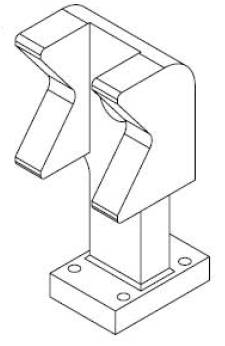 另外,常规夹持还可采用两个V形块或两个半圆块。但由于采用两个半圆块夹持药柱时为两个面接触,在半圆块夹爪尺寸一定的情况下,若药柱直径过小会造成药柱装夹时出现轴线歪斜,只能通过设计专用工装的方式来满足使用要求,出于精度及成本的原因,本项目不考虑使用半圆块工装,采用V形夹爪来夹持药柱,本项目设计了V形夹爪来夹持药柱,如图7所示。