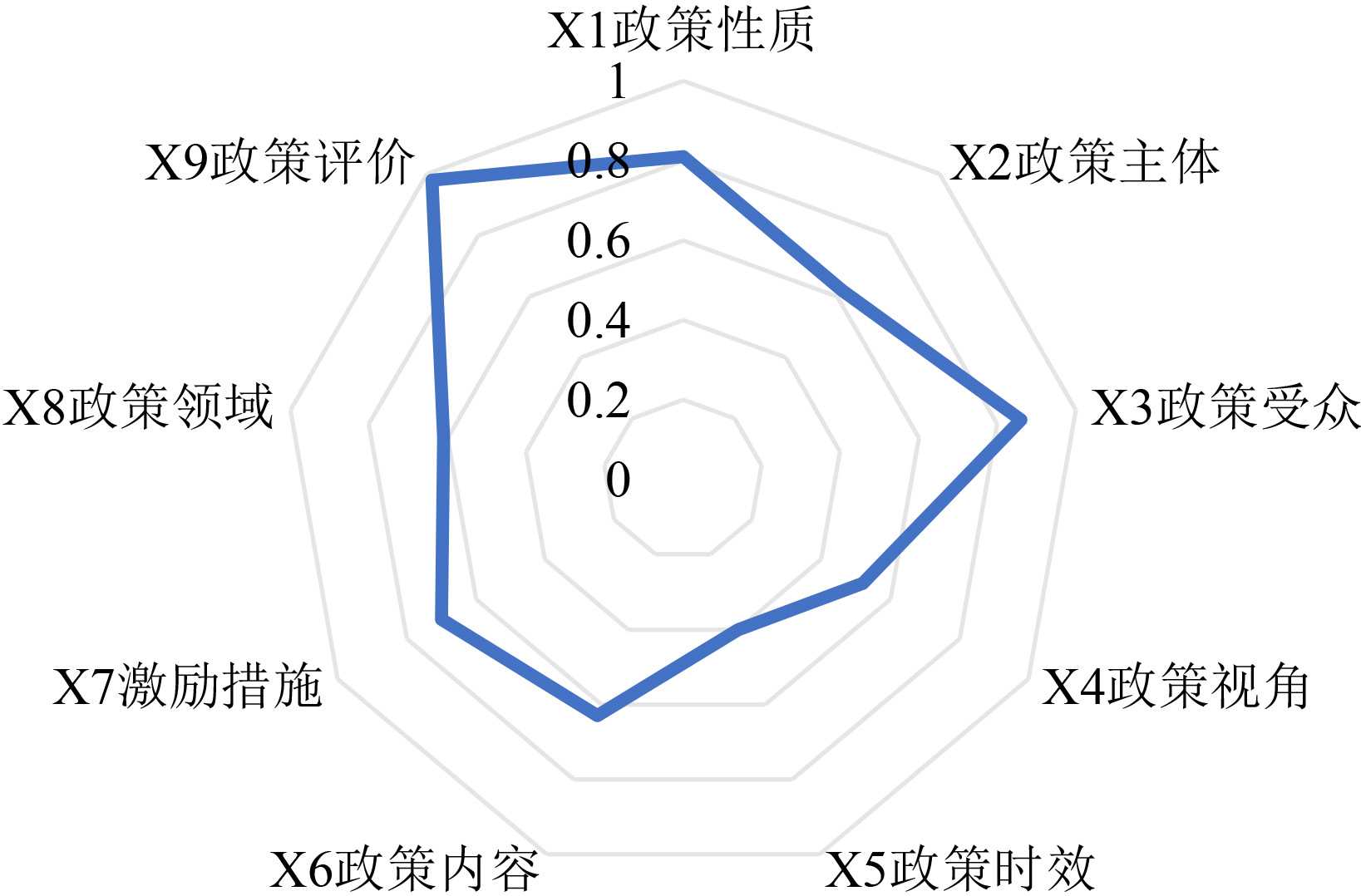 图2. 农民工返乡创业政策PMC指数均值雷达图