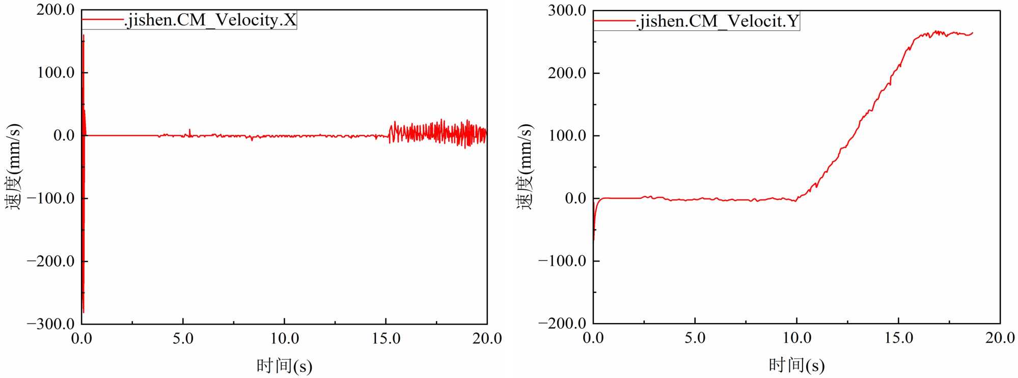 图13是虚拟样机在X轴、Y轴、Z轴的速度曲线,由图看出机器人在刚进入变径管道过渡位置时,X轴和Y轴方向的速度是趋近于0的,此时机器人并无明显偏移,在7 s和18 s时,机器人Z方向的速度突然增大,观察机器人仿真模拟时,在过渡阶段到