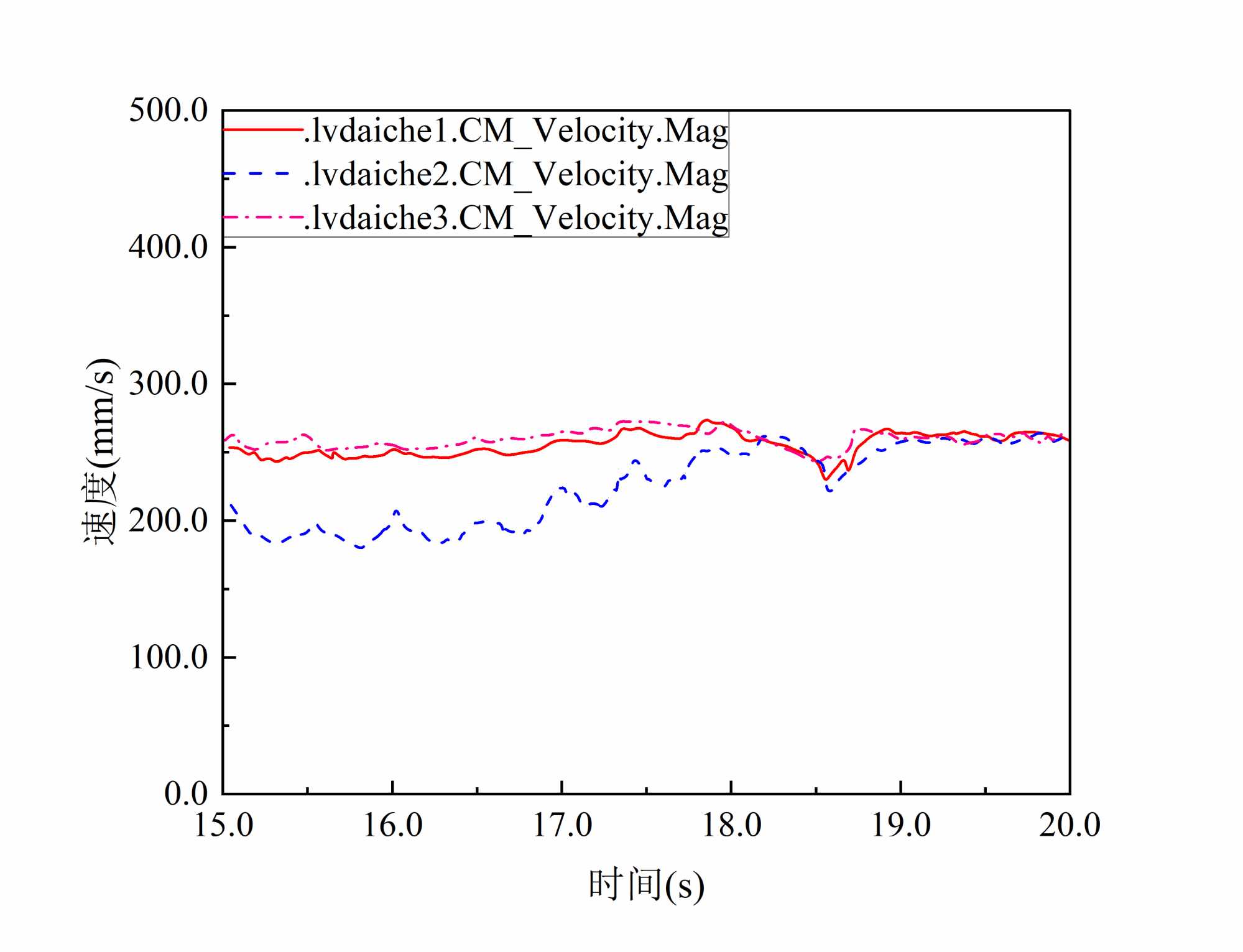 履带车在自适应平面采取120˚均匀分布的形式与管道内壁接触,通过测量三个履带车的速度曲线可以间接反映机器人整体运动的平顺性,并验证机器人管道通过性分析理论。图8为履带车在各项管道中