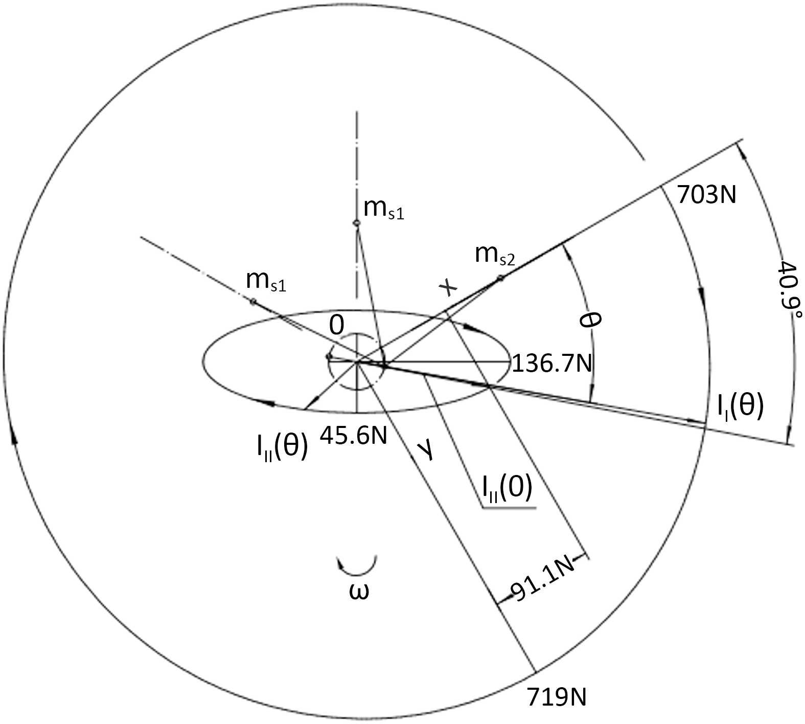 图5. W型60度二级压缩机往复质量ms2偏置反时针旋转图例