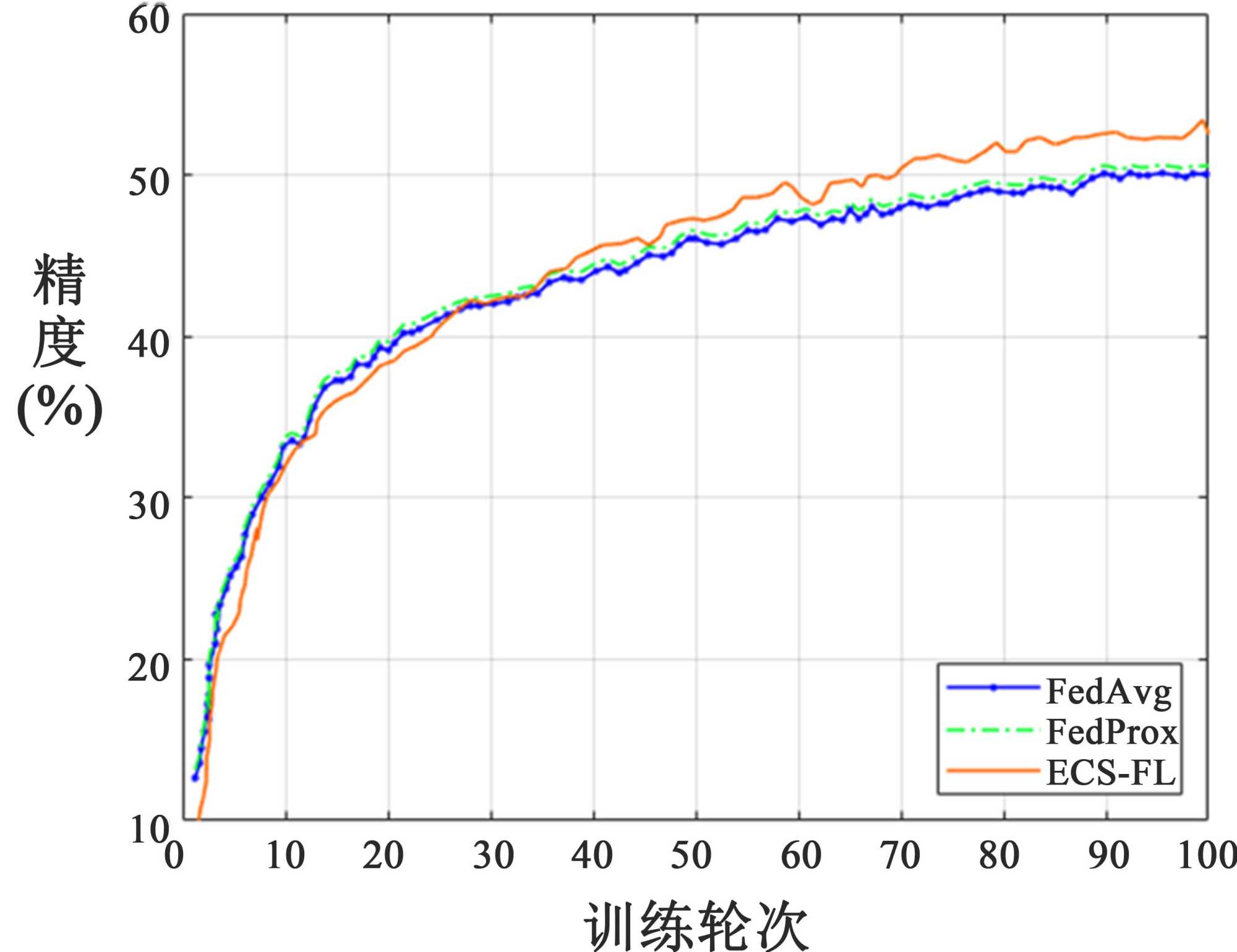 此外,损失值的比较表明,ECS-FL实现的损失低于FedAvg和FedProx,显示出在训练期间更稳定的收敛。