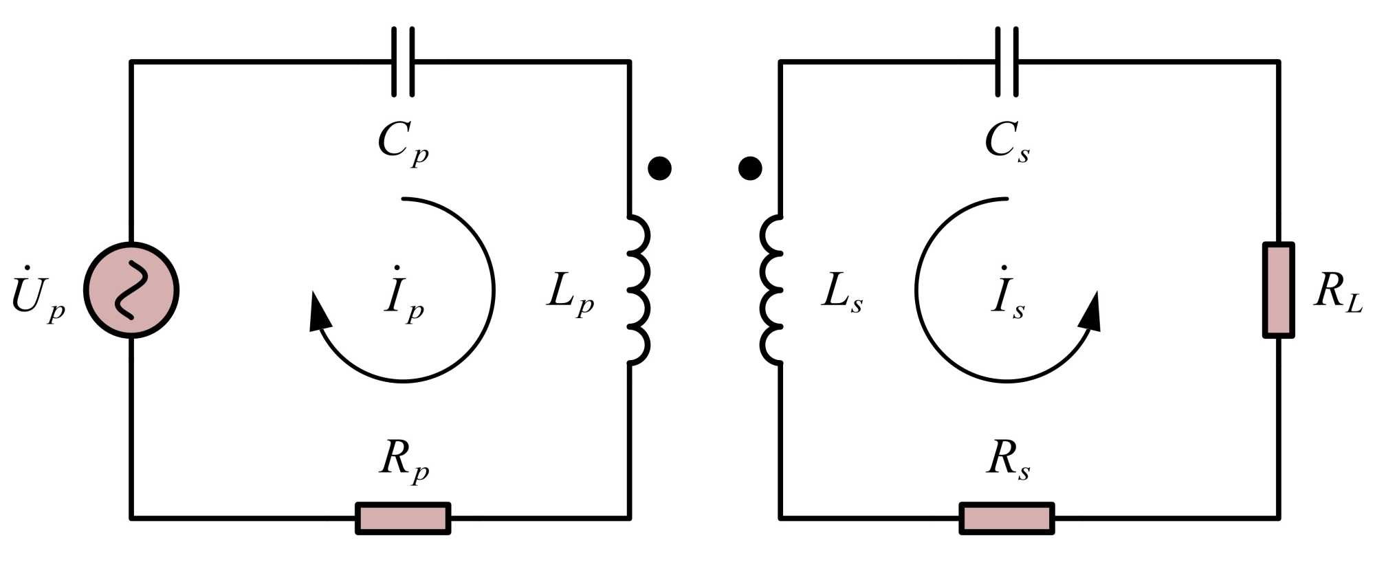 图2为采用串联补偿拓扑时系统的互感等效模型,基于基尔霍夫电压定律可建立如下的回路方程: