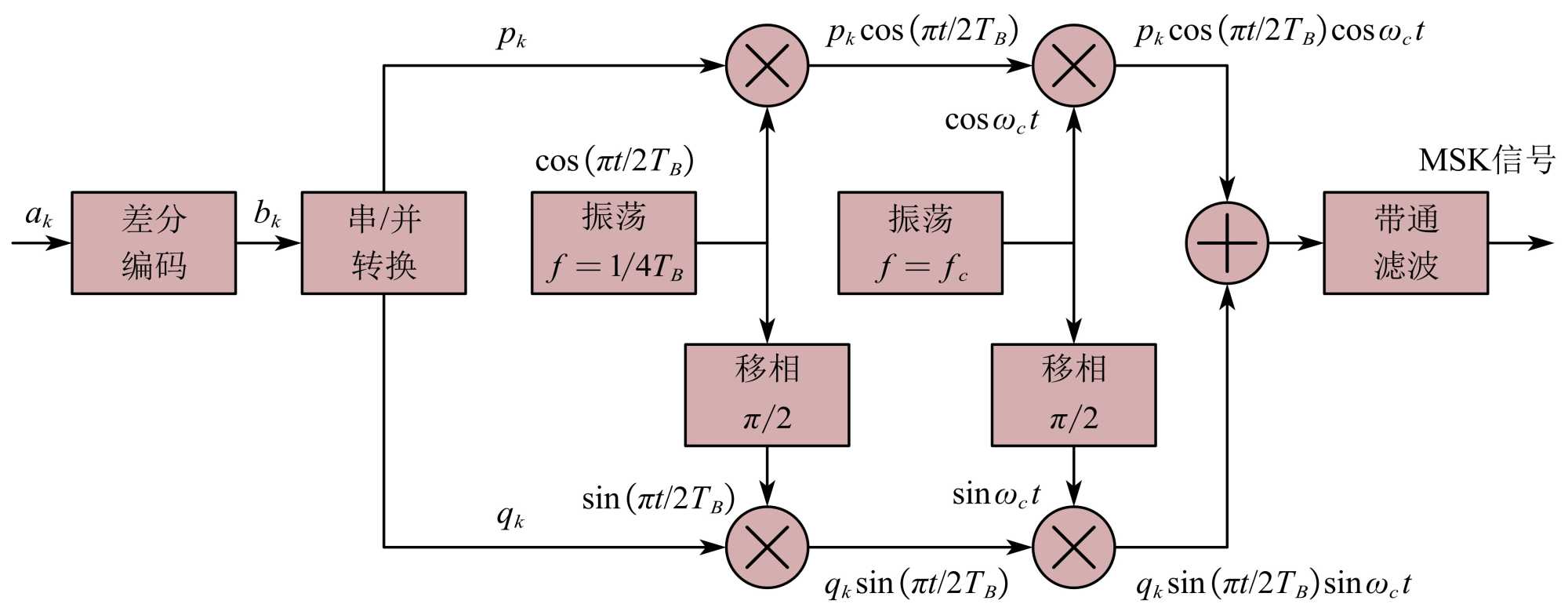 图5. MSK信号正交调制原理框图