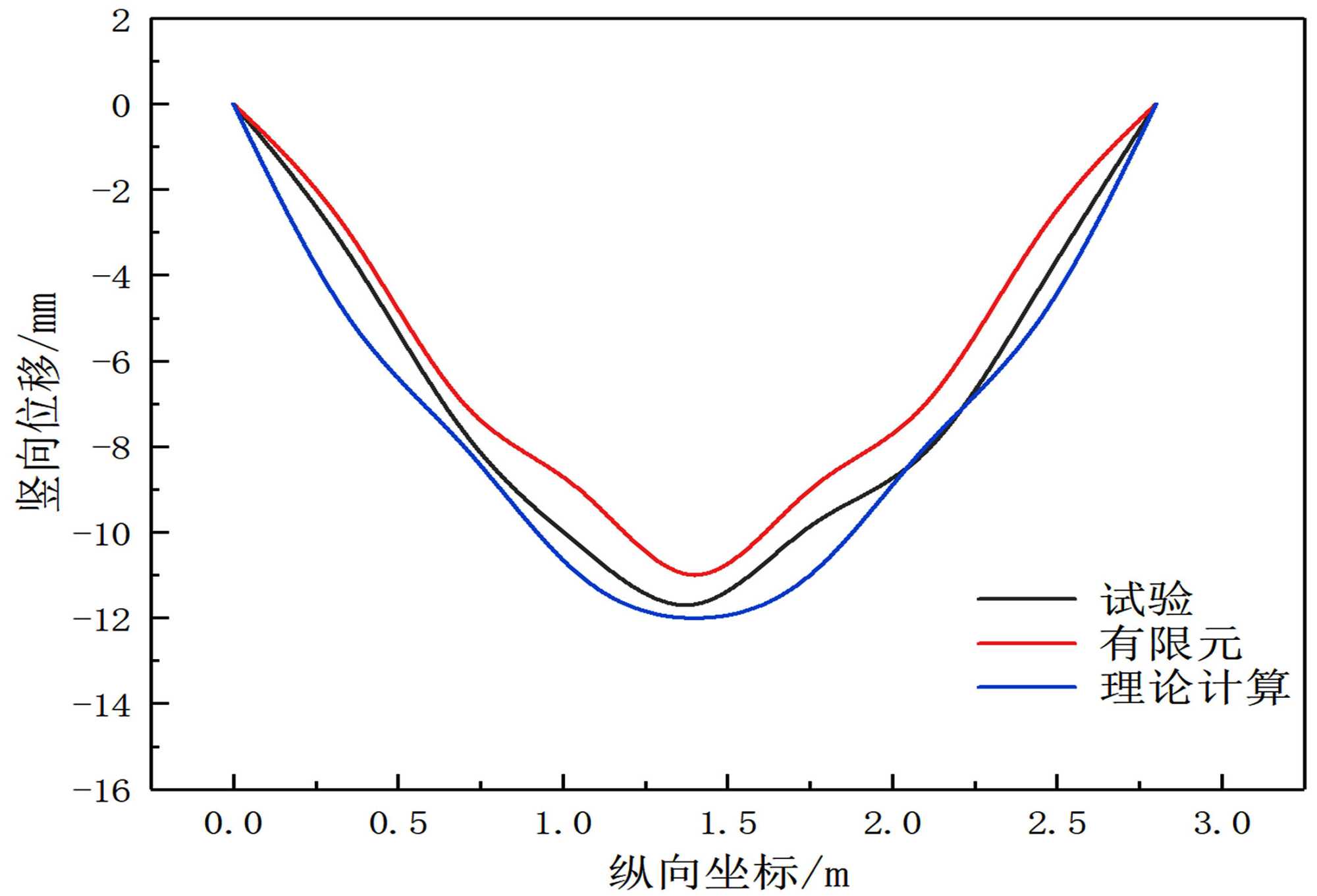 图6. UHPC-钢桁腹组合梁竖向位移沿纵向分布