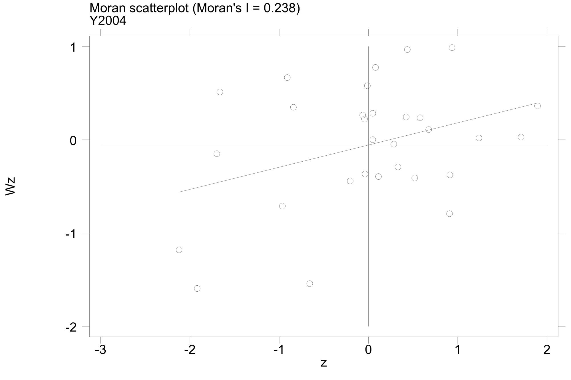 进一步地,在式(1)中加入被解释变量的空间滞后项,将模型拓展为一个带有固定效应的空间单门限面板模型: