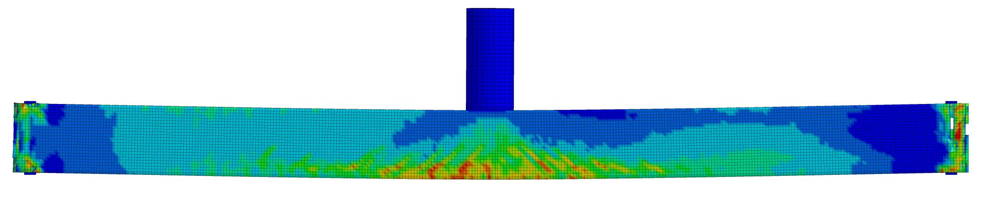 连续盖帽模型(CSCM)的可靠性已经在许多论文[2] [6] [7]中得到验证。因此,混凝土采用连续盖帽混凝土模型MAT_CSCM_CONCRETE,使用双线性本构模型MAT_PLASTIC_KINEMATIC模拟钢筋;梁上配重不参与受力使用弹性材料模型MAT_ELASTIC模拟。各个材料模型的具体参数见表1。