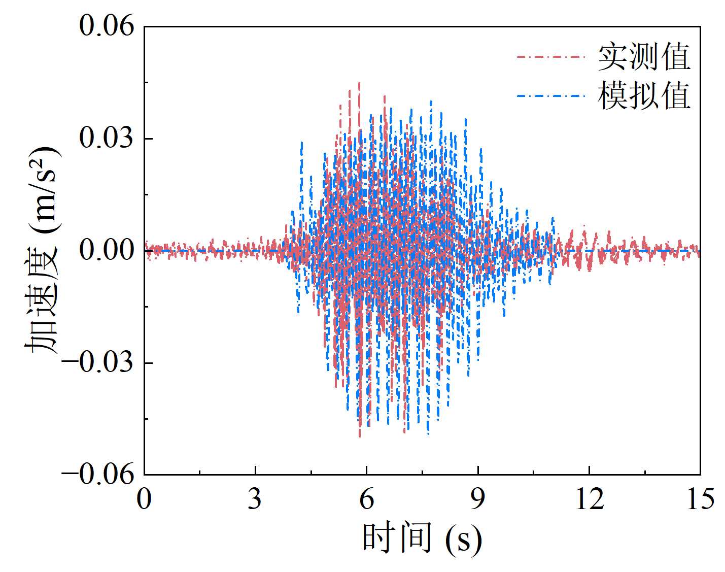 | 测点 | 实测值(m/s2) | 模拟值(m/s2) | 误差(%) |