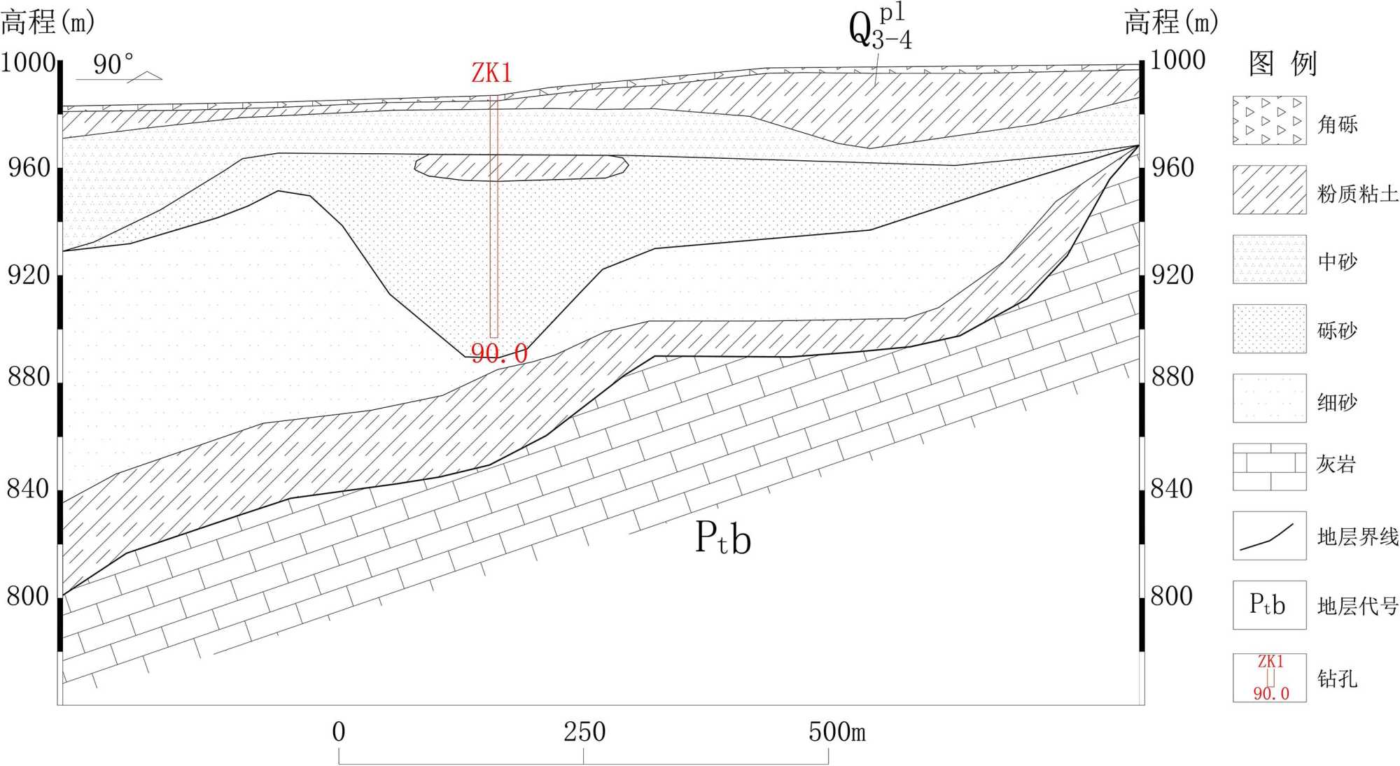 通过研究区环评水文地质勘查中物探测试及钻探验证,地层垂向结构由上至下分别为角砾、粉质粘土、中砂、砾砂、细砂、粉质粘土、灰岩等(表2、图2)。