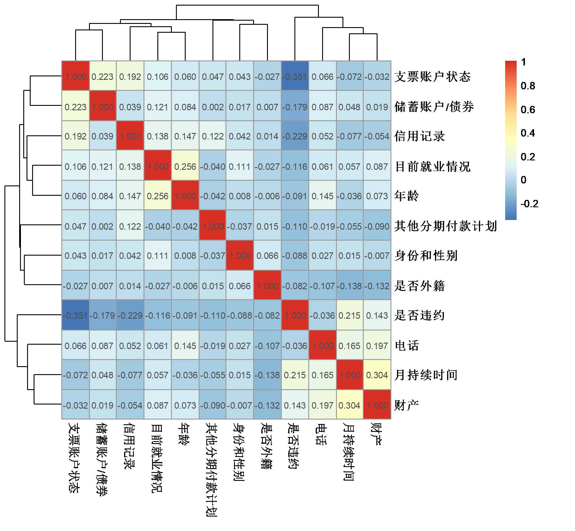 | 协变量 | 财产 | 年龄 | 其他分期付款计划 | 电话 | 是否外籍 |  |