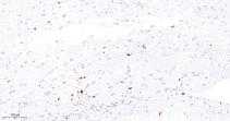 假手术组KI67阳性细胞意外增多,可能与颅骨缺损应激相关;实验1组增殖信号几乎消失,提示早期增殖窗口关闭;实验2组仅零星阳性细胞;实验3组阳性细胞数量显著减少;实验4组仍可见少量增殖灶,但强度低于假手术组。见图片5如下,顺序为假手术组、实验1组、实验2组、实验3组、实验4组。