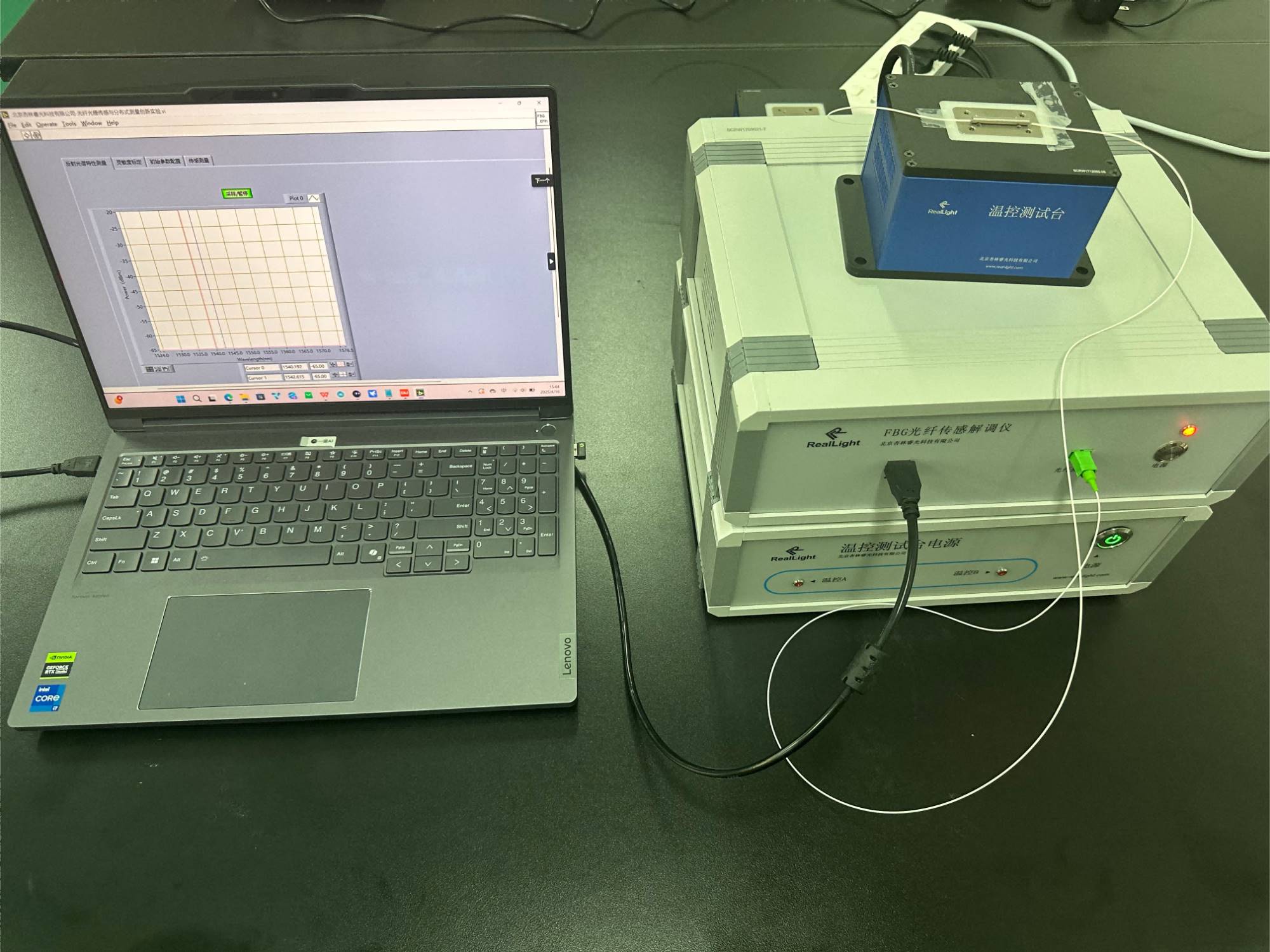 本环节实验的目的是标定光纤光栅中心波长的变化与温度的关系,得到光纤光栅的温度传感模型,也为后续隧道火灾监测模拟实验环节提供温度测量参考依据。