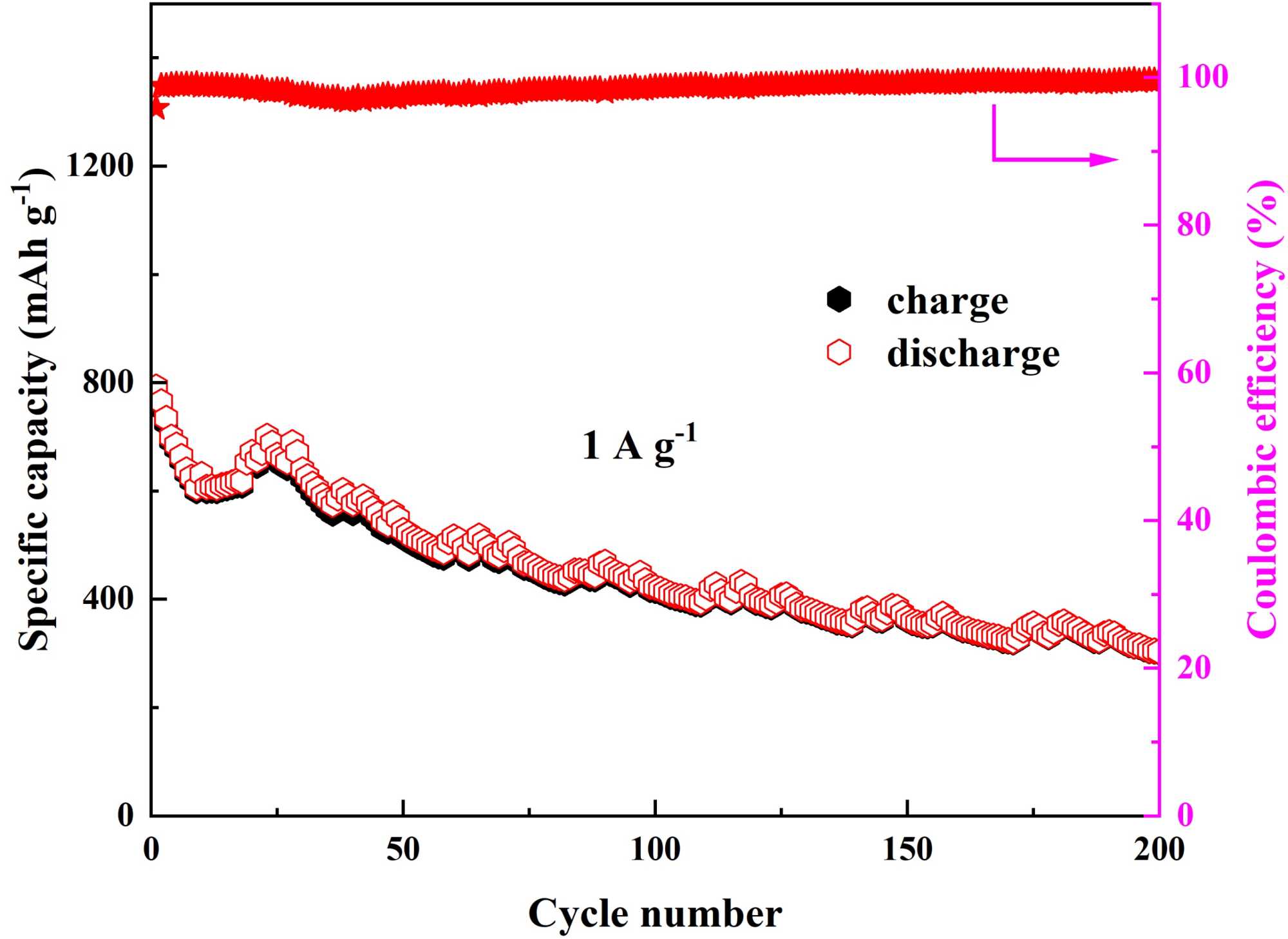 Figure 10. Long cycle performance curve at 1 A g−1 of Si@CNFs
