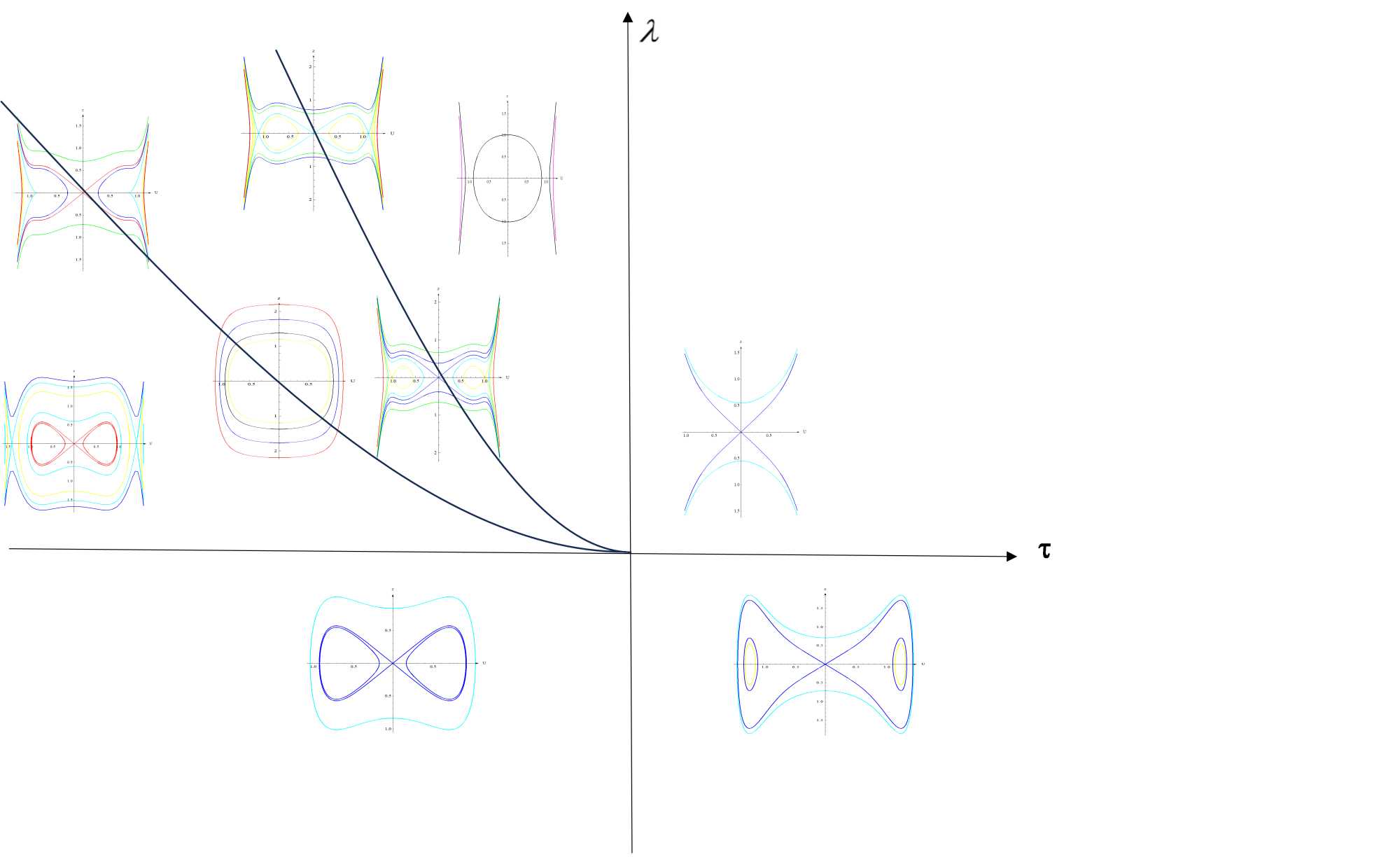 Figure 1. Bifurcation phase portraits of the RKL equation