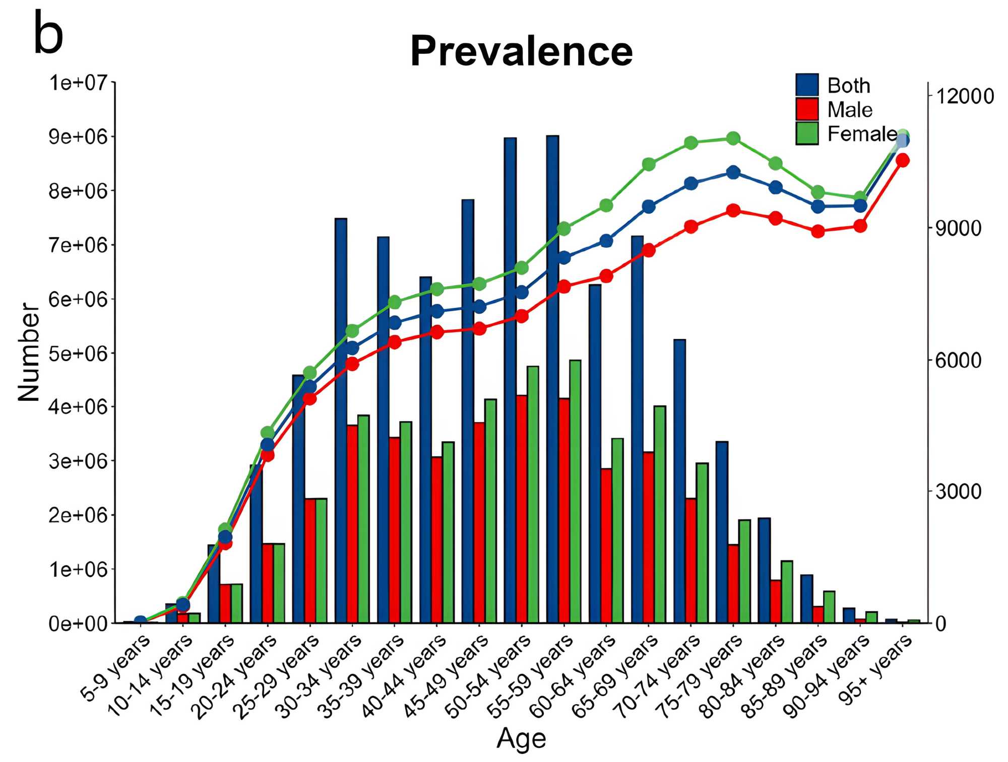 Figure 1. Burden of gastroesophageal reflux disease by age group in China from 1990 to 2021