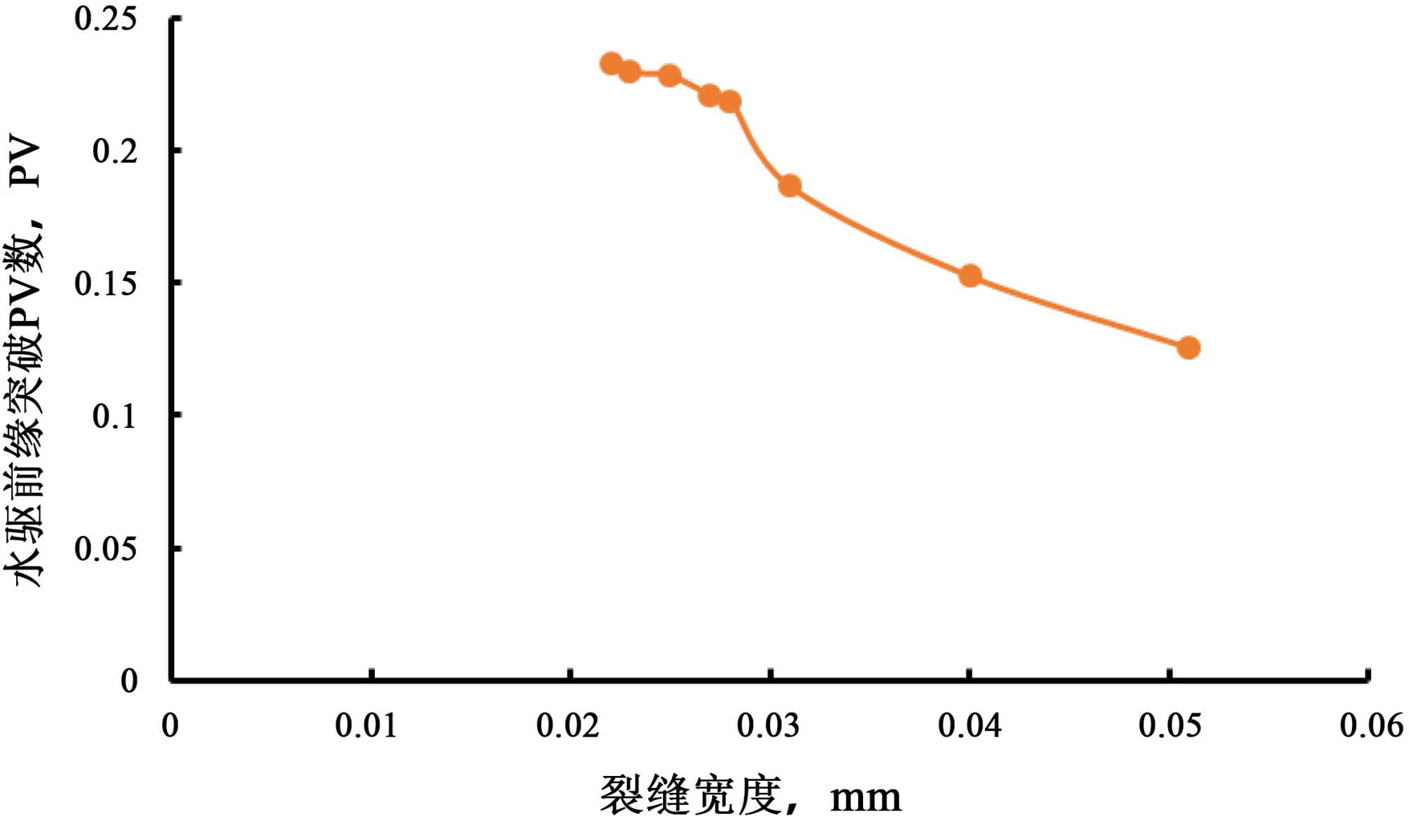 图2. 不同裂缝岩心水驱前缘突破PV数