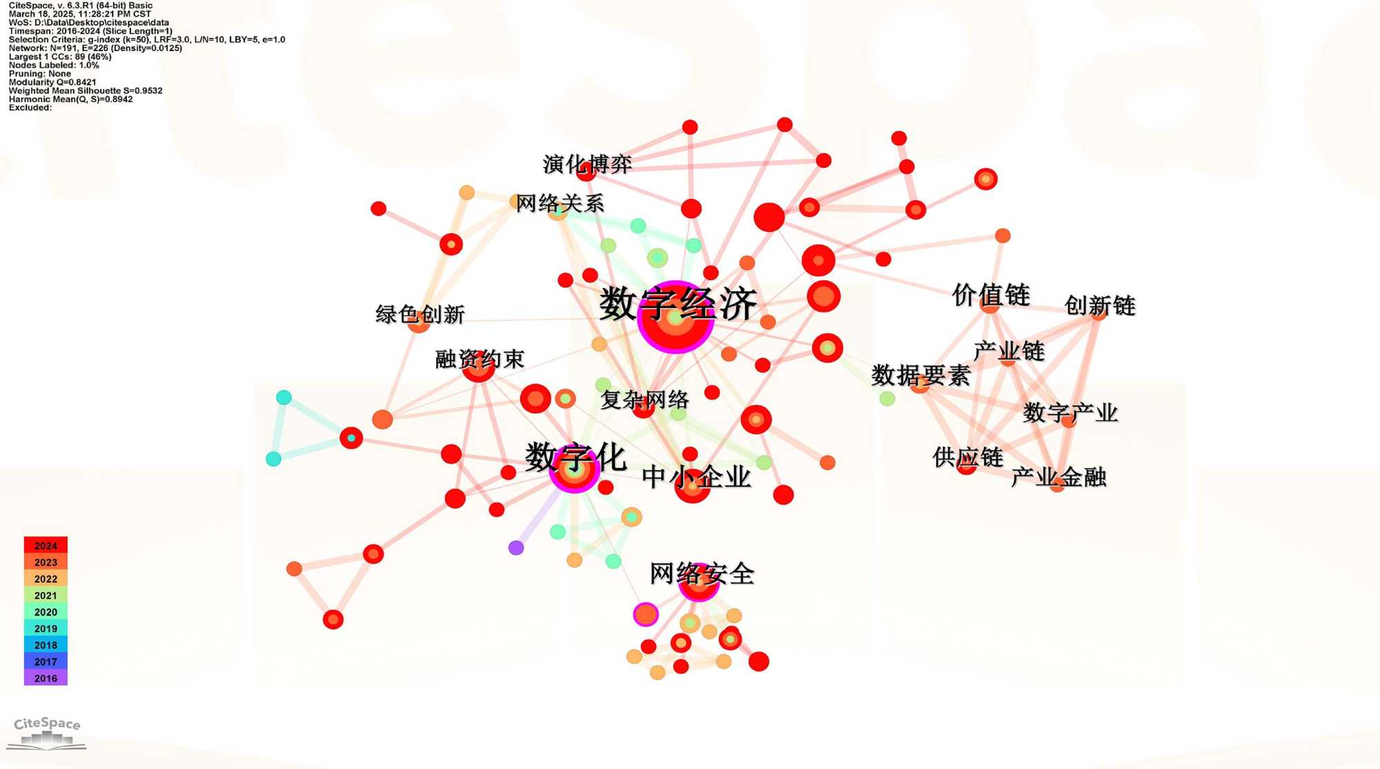 通过运用CiteSpace文献计量分析方法对企业数字化转型与复杂网络研究领域的国内外文献进行系统梳理与可视化分析,本研究得出了以下主要结论: