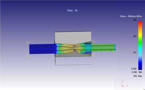 用CATIA软件建立旋锻连接模型导入DEFORM-3D软件进行仿真分析,如图5所示。温度设置为25℃,外管单元数为125,125,内管单元数为69,321。