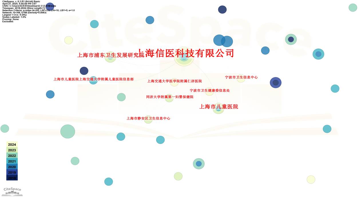 图3. 区块链护理领域研究的机构合作共现图谱(节选)