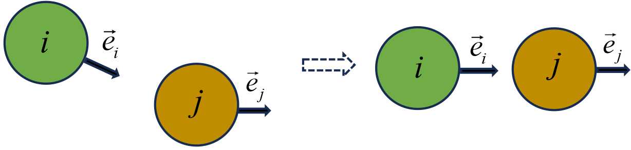 本章的研究条件是中等密度及以上的人群,如图2所示。在这种条件下,行人更容易受到感知范围内的其他行人影响,并产生追从与自己期望方向和速度大小相近行人的意愿。行人与其前方行人的距离越近,跟随现象就越显著,而且更加倾向跟随密度较大的群体。