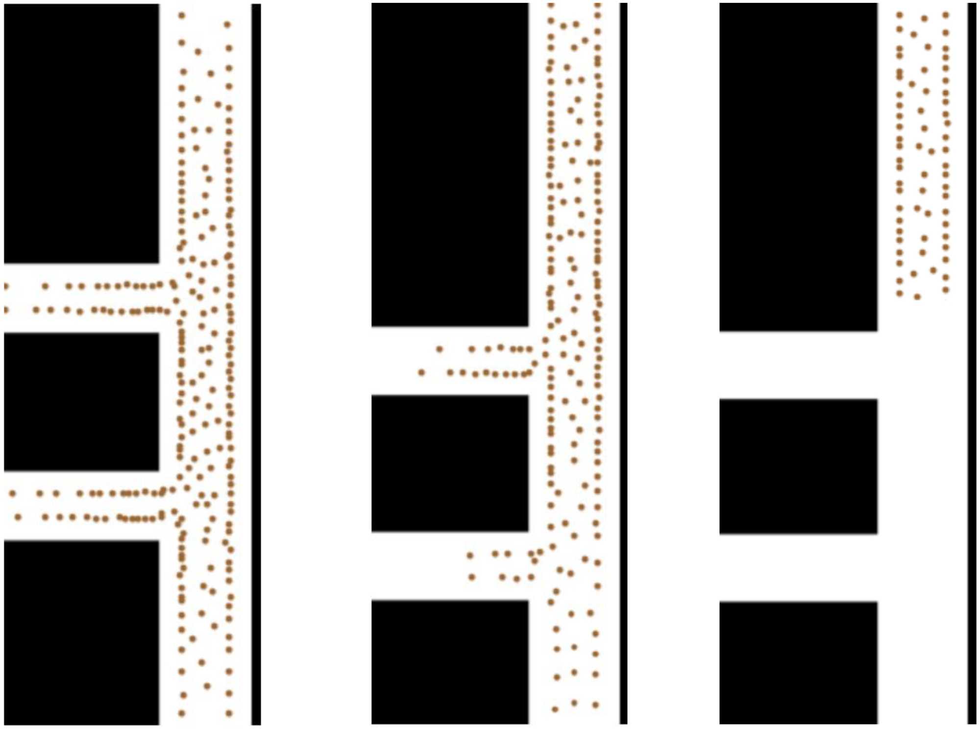 开展汇流结构中的行人流动力学的建模仿真和策略优化的研究,对于防止拥挤踩踏事故的发生具有重大价值。在公共场所中,由于建筑结构和路线复杂,多条支路的汇流现象普遍存在,安全事故时有发生,对多支路汇流的研究意义重大。