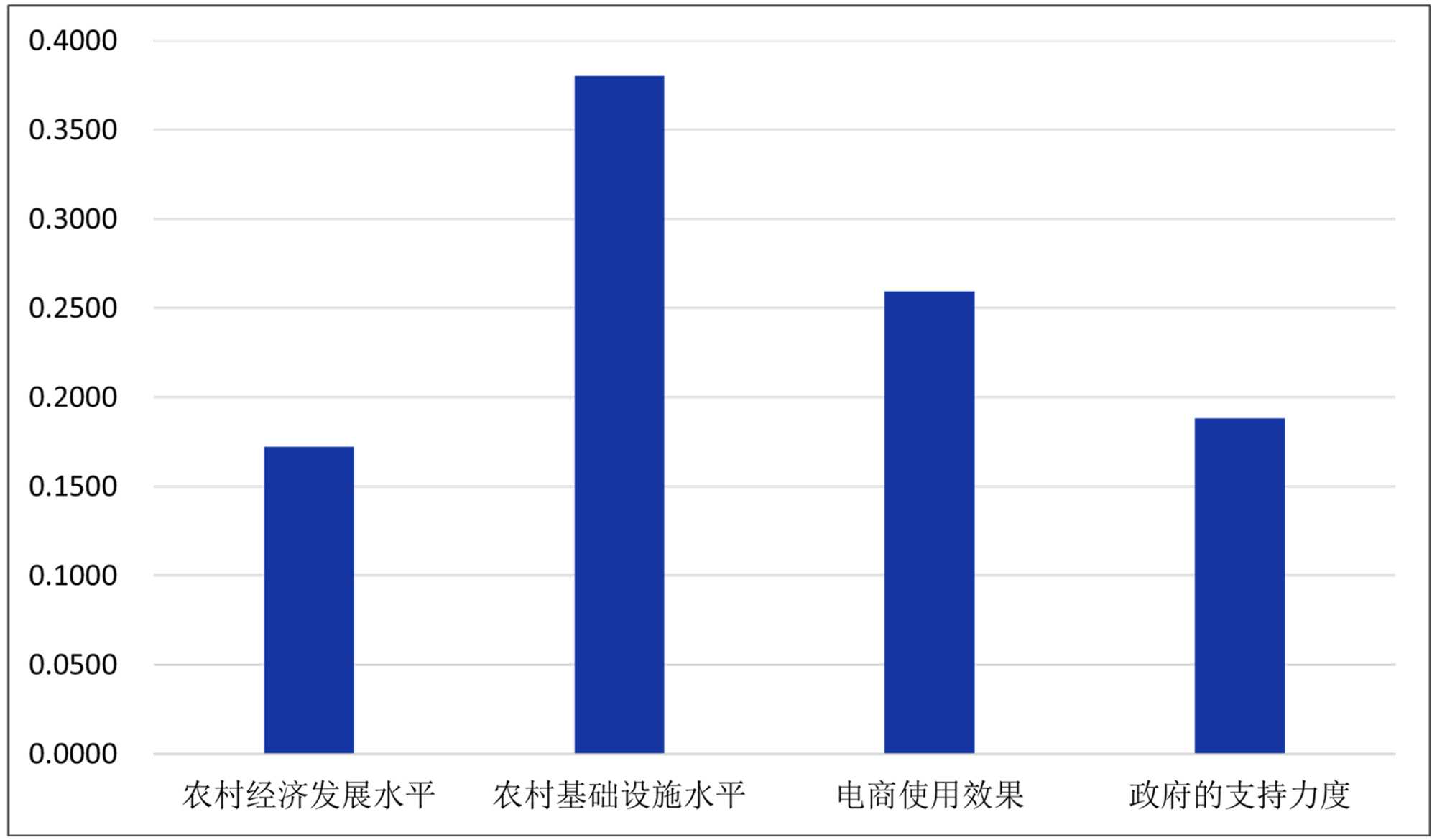 从政府支持力度的指标结果发现:第三产业固定资产投资增速(0.1186) > 地方一般公共预算支出(0.0696),这表明政府在农村电商相关产业上加大了投资建设力度,贵州通过建设电商产业园、物流仓储中心等基础设施为农村电商发展提供硬件支持。地方一般公共预算支出则一般涉及对农村电商的政策扶持、培训教育等方面,而在这些方面,贵州的支持力度还比较小,所以应加大对其的投入。但这两者之间关系紧密,固定资产投资为农村电商发展奠定物质基础,公共预算支出则从政策引导和人才培养等方面提供软环境支持,共同吸引更多农户参与到电商行业之中,进而推动农村电商的快速发展。