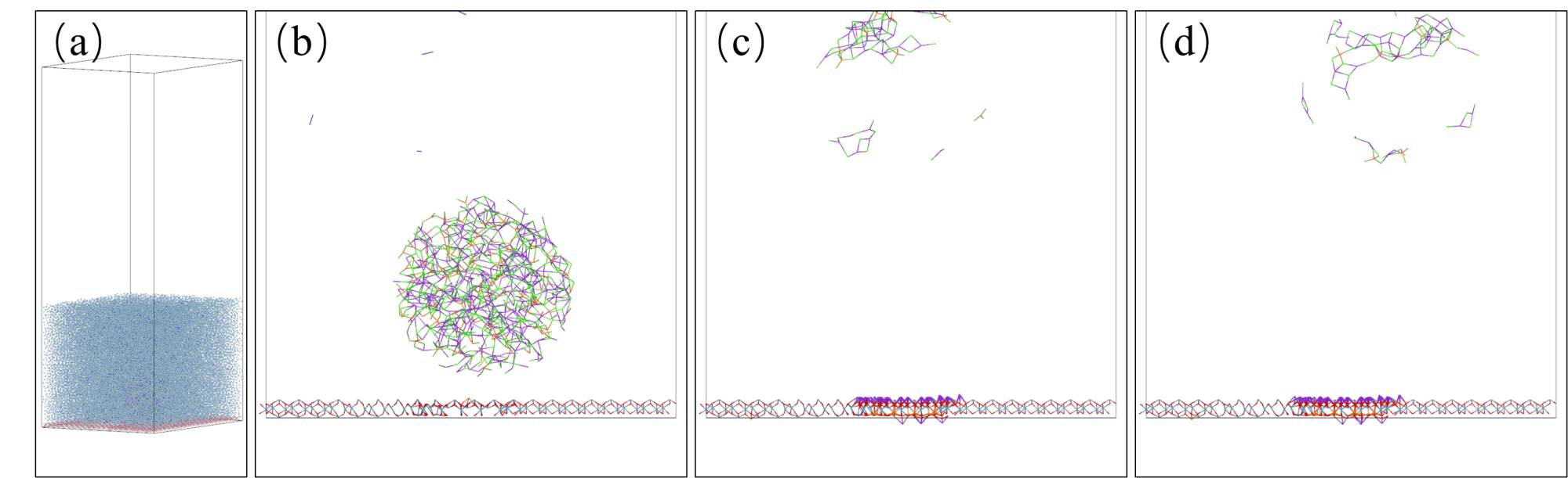 除传统的实验测量评估精炼工艺的方法外,分子动力学(Molecular Dynamics)模拟从原子角度出发,利用运动方程以及能量方程(如牛顿方程、拉格朗日方程)模拟原子的性质和运动,从而模拟系统中各个粒子的运动状态,以确认系统的结构和性质[13] [14]。众多研究表明,采用分子动力学的方法能计算熔体净化过程中的原子变化,模拟精炼介质的基本性质以及夹杂物的润湿行为,可为熔体净化介质开发以及净化工艺的设计提供理论支撑[15]-[19]。