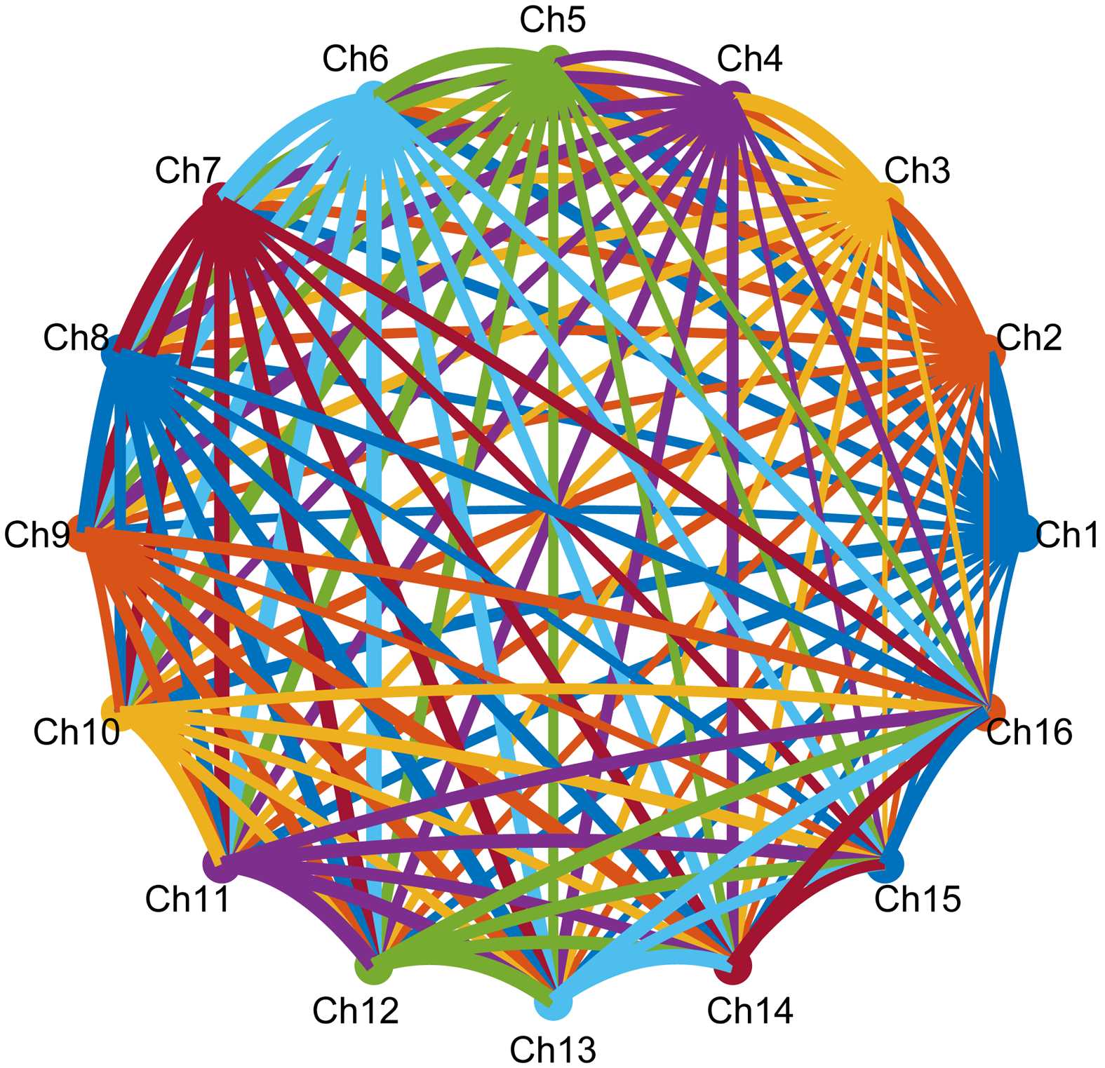 是通道总数。DTF值的大小表示两个通道之间信息传递的强度,DTF的值越大,表示两个通道之间的信息传递越强,当DTF值为正时,说明信号从第一个通道传递到第二个通道;反之,若DTF值为负,则表示信号从第二个通道传递到第一个通道。通过传递函数的模值计算得到的DTF值可以组成一个脑功能网络矩阵,该矩阵的每个元素代表不同脑区或通道之间的DTF数值,反映了脑网络中各个节点之间的因果关系和信息传递强度。为了直观分析脑网络的结构和特征,利用可视化工具(如热图、网络图等)对该矩阵进行展示。这种可视化方法能够清晰呈现脑区之间的信息流向和连接模式,从而帮助研究者更好地理解和解释复杂的脑功能互联关系,为脑网络研究提供直观的支持。
