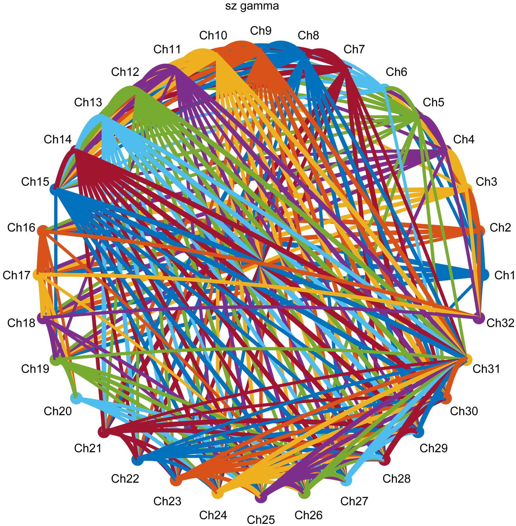 大脑功能连接存在显著的个体差异。成年正常人群体的平均连接模式显示这4个通道无连接,但这并不代表所有个体均如此。此外,与成年患病群体及青少年正常群体相比,成年正常人的Gamma频段连接模式具有独特性,这与其大脑发育成熟和功能状态稳定密切相关。青少年的大脑处于发育阶段,可塑性强,神经连接不断优化,神经活动与连接变化更为活跃。与成年正常人稳定的大脑功能连接模式不同,青少年的大脑连接更加丰富且灵活。一些在成年人中表现为弱连接的脑区关系,在青少年中可能因大脑发育特点而强度较高,因此在相同算法和阈值设定下能够显示连接,表现为无断点。此外,青少年的神经环路尚未完全成熟定型,其连接模式与成年人存在显著差异,这也导致了图中表现的不同。