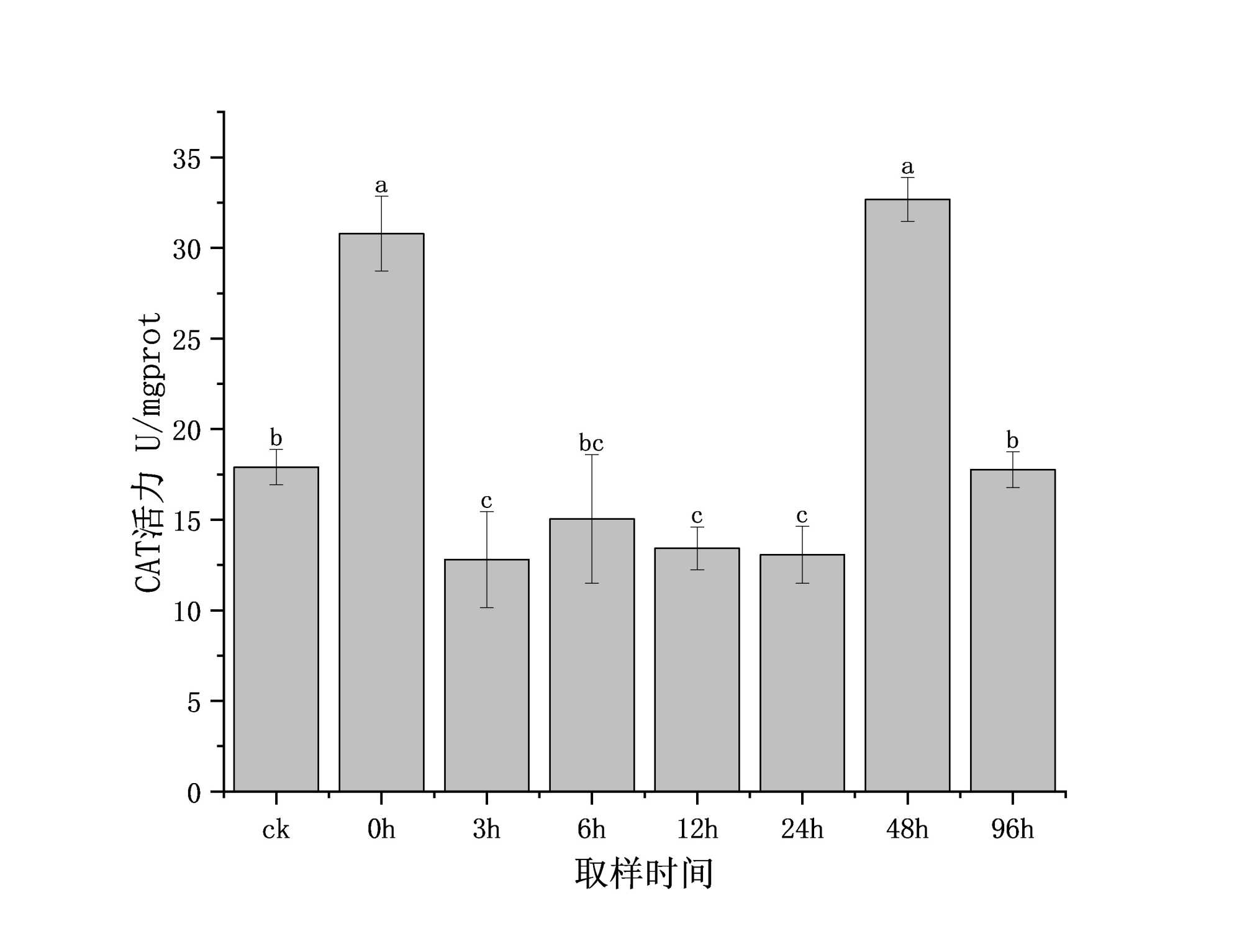 图6. 运输胁迫对梭鲈内脏团CAT活力的影响
