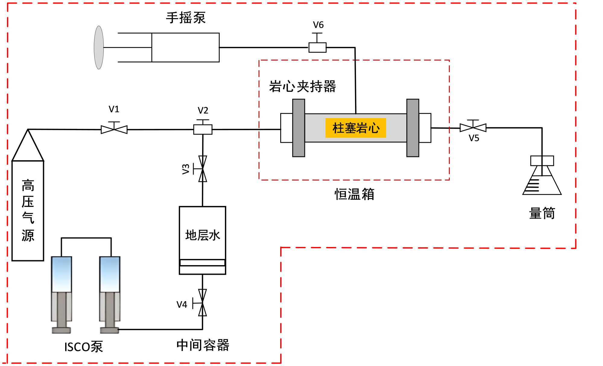 4、驱替介质准备:按实验设计分别配置CO2、N2和模拟地层水作为驱替介质。CO2与N2采用高纯标准气体(纯度 ≥ 99.99%),在驱替前进行充分预充压与恒温处理,确保介质稳定注入;