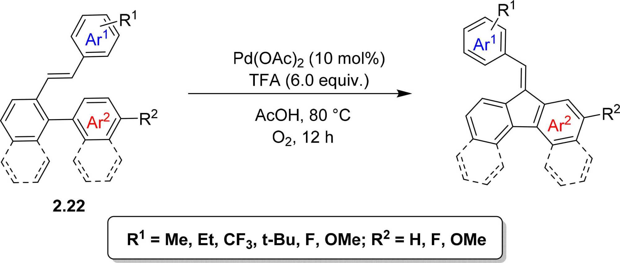 图21. Pd(II)催化邻烯基取代联芳基化合物的C-H偶联反应合成9-芴烯衍生物