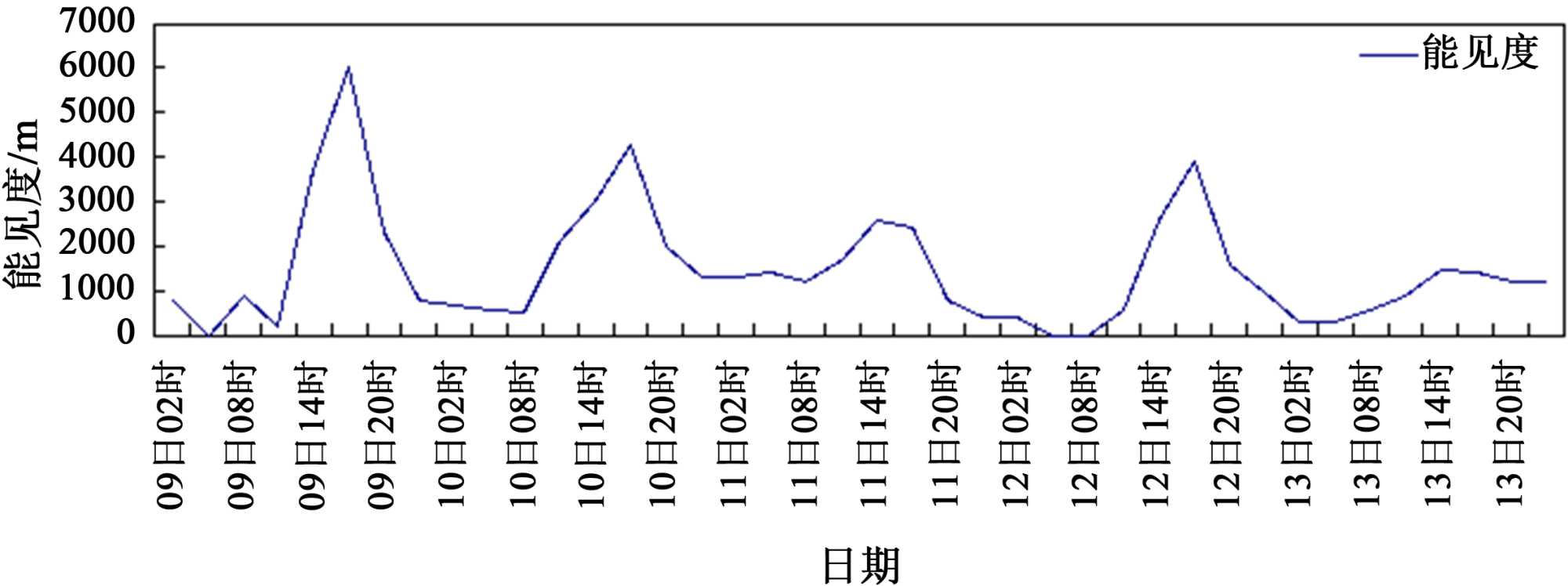 图1. 2015年1月9~13日能见度随时间变化曲线
