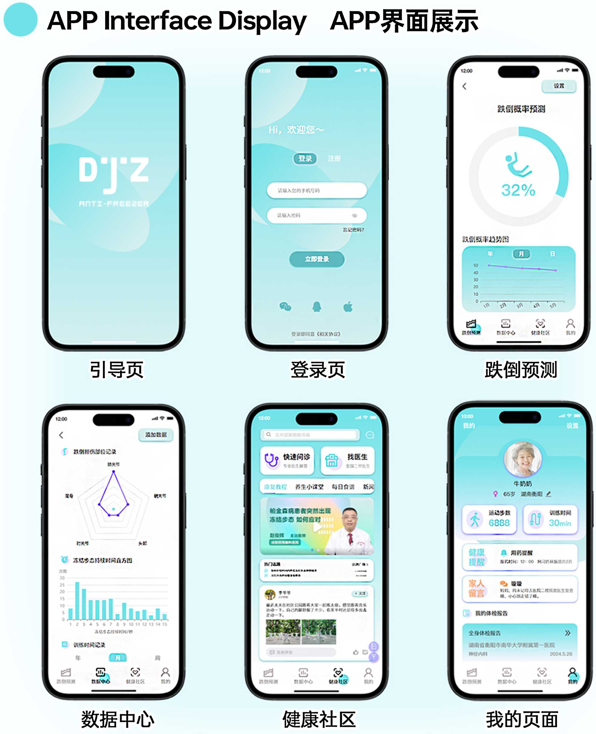 App整体设计上注重布局的清晰合理,保证基础的视觉美观与交互流畅,确保用户在使用过程中能够获得良好的体验。通过App模块,能够帮助冻结步态患者更好地管理自己的健康。