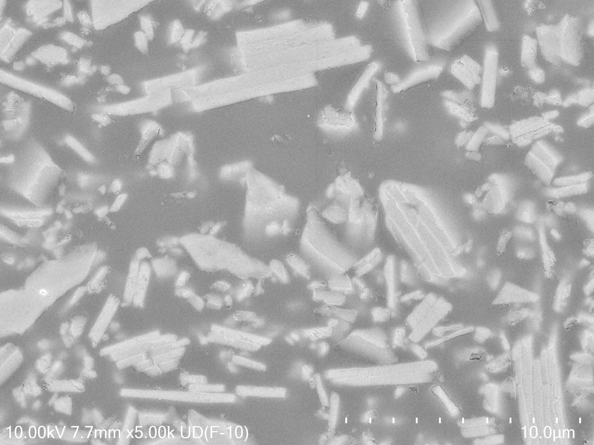 本次实验的目的是放大观察粉末颗粒的形状,如断口、大小等,运用了微观形貌特征分析[15]。本次研究使用的扫描电子显微镜是日立品牌型号为SU8600的,条件是样品台的倾斜角约为7.8 mm,放大倍数为103~20 × 103,电压为10 kV。本次研究重复了至少20次。