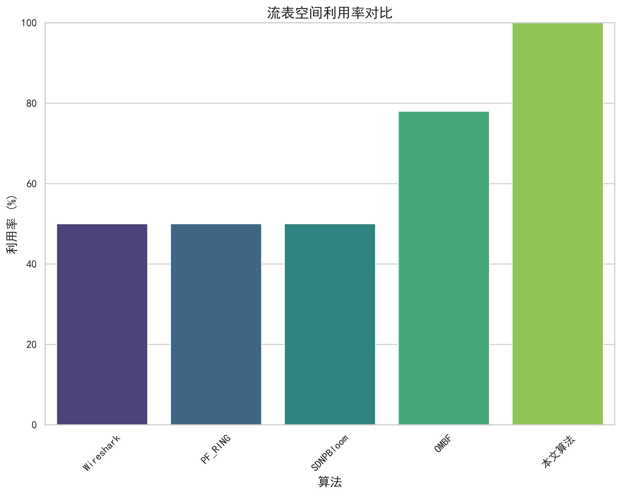1) 流表空间利用率:衡量流表存储效率的指标,计算公式为: