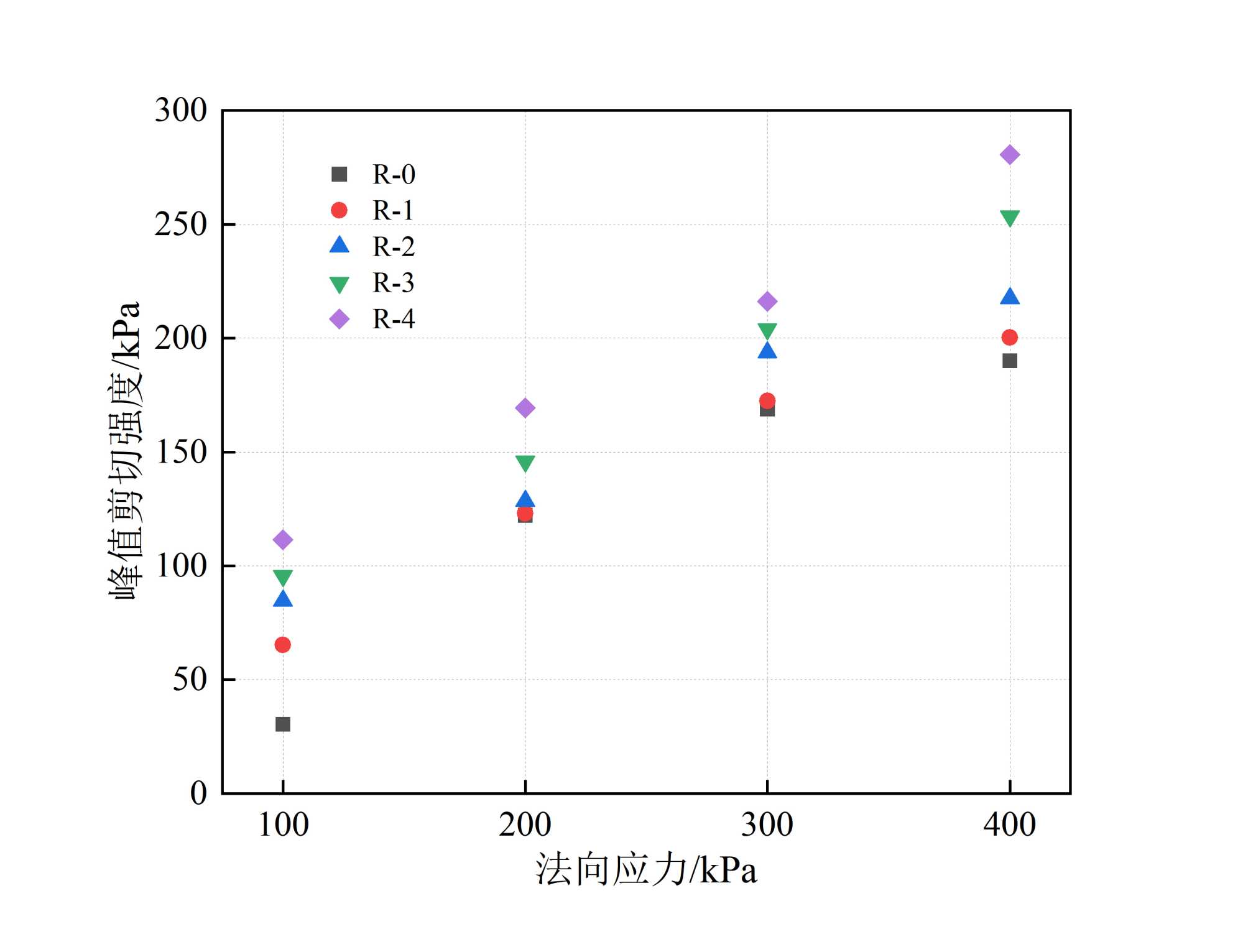 图4. 峰值剪切强度随粗糙度等级变化曲线