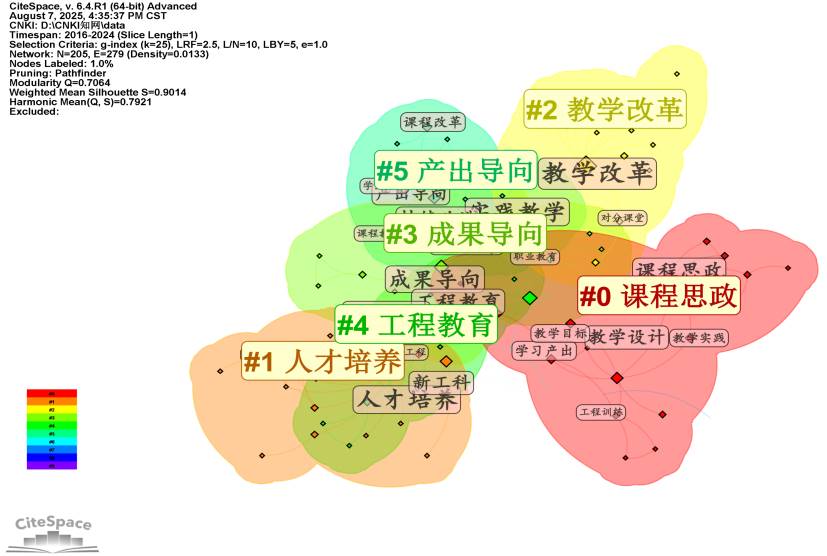 图5. 2016~2024年OBE理念关键词聚类图谱