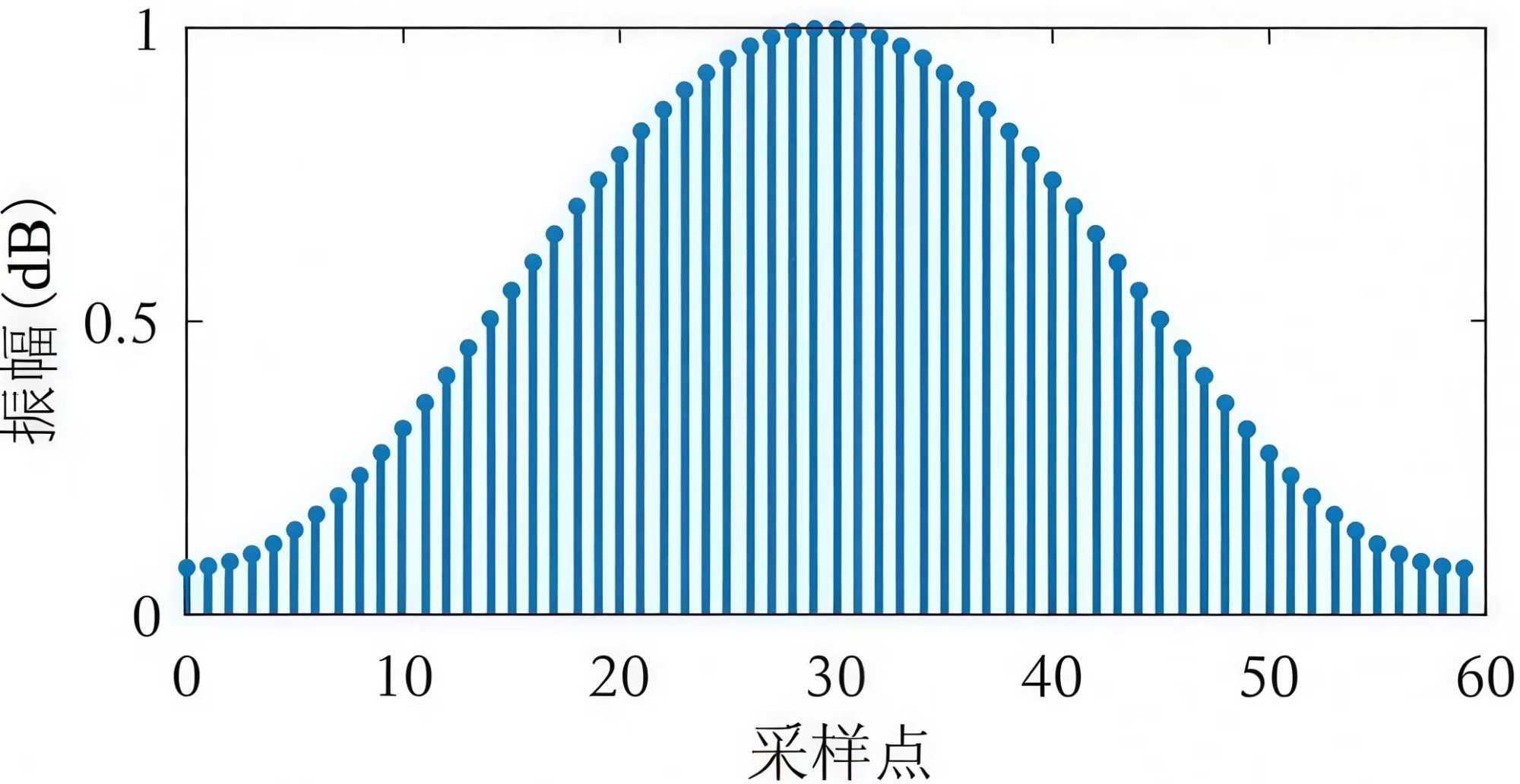图注:(N为帧长,采样点对应窗序列索引)的幅度分布。其“钟形”曲线用于语音信号处理加窗环节,可平滑帧边缘、抑制信号突变,为后续快速傅里叶变换(FFT)等操作提供预处理支撑。