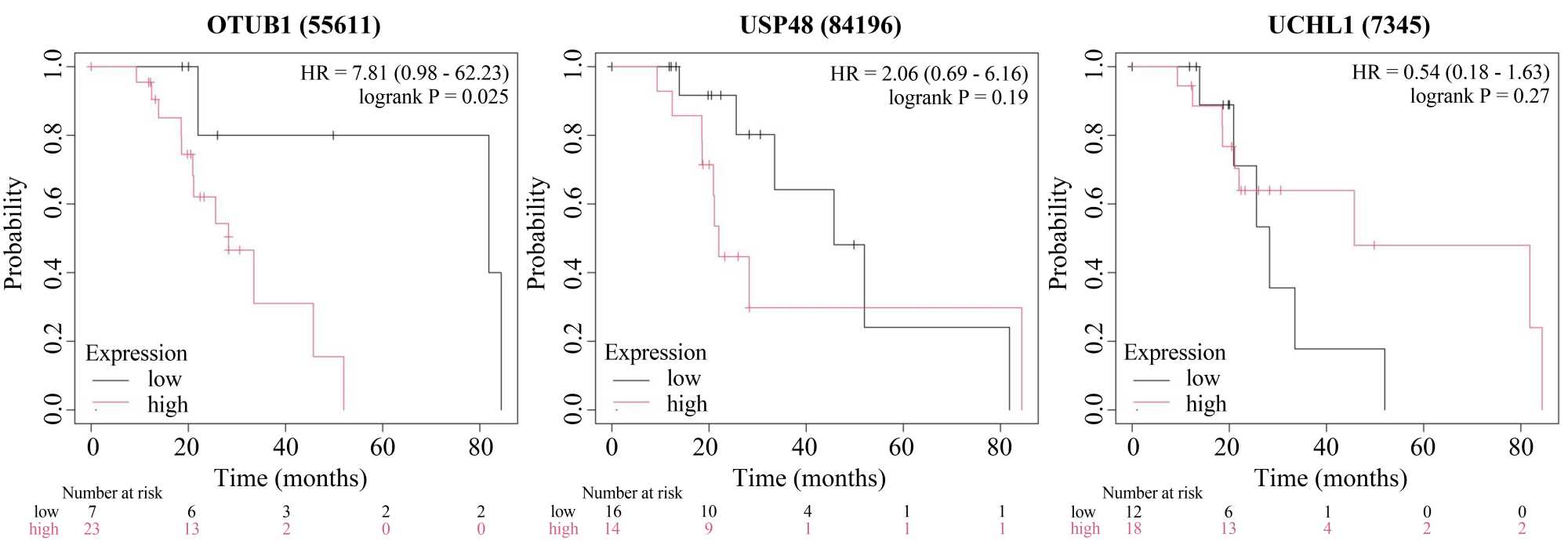 Figure 3. Prognostic analysis (Overall Survival, OS) of deubiquitinating enzyme genes in liver cancer patients