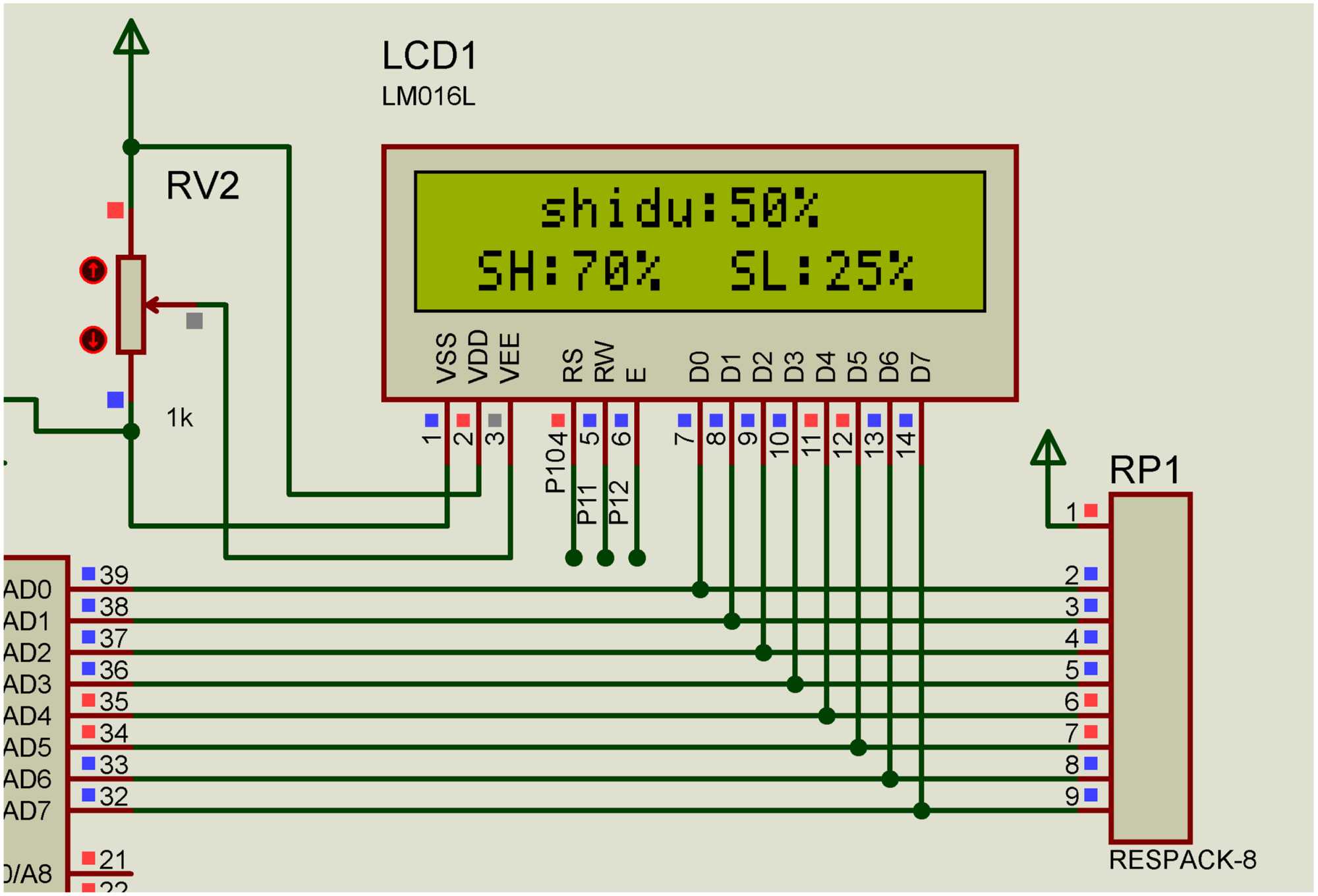 此次设计主要用到了四个按键,单片机处是复位键,其他三个分别是湿度值上调键、湿度值下调键和湿度值确认键。为了提高设计的精确度,在按键部分要注意抖动,联系以前学过的知识,对此所做出的解决方法就是先查询是否有低电平出现,有的话立即延迟,需要注意的是当延迟过后需要再读一次I/0口的值,如果读出的是1的话,则表示没有按按键,当读出的是0时,表示有按键按下[8]。