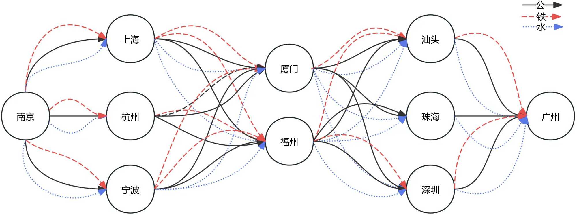南→杭→厦→深→广 |