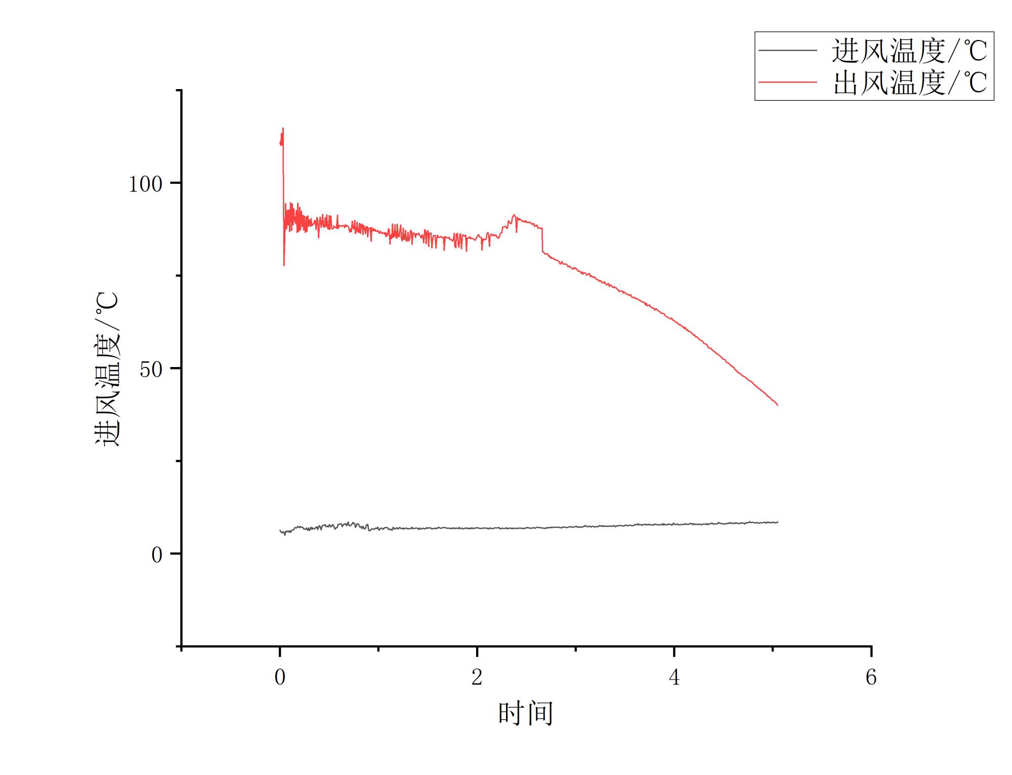 Figure 8. Curve graph of the inlet and outlet air temperature changes during the energy release stage