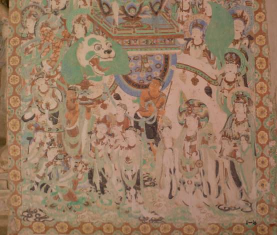 Figure 7. Water moon Guanyin painting in Cave 2 of Dongqianfo Cave with colored water patterns