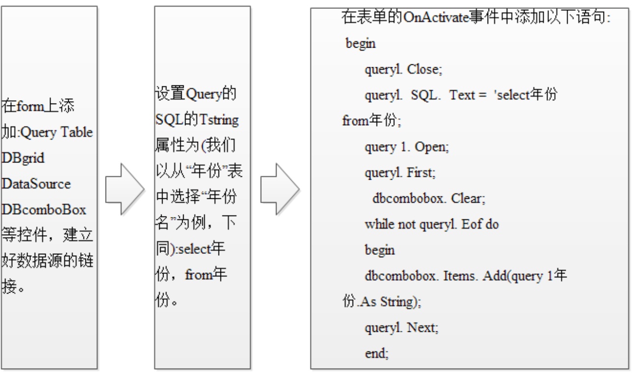 本系统运用了Query的静态查询原理,在软件运行的时候,运用WHERE后的关系式,动态地改变查询条件的文本。具体的方法是:首先在combobox2中,从表jx_dy中选取某个字段;然后在eombobox5中选择运算关系式(>,<,≤等);在eombobox9 (或文本框)中输入查询的值;最后鼠标点一下“查询”,程序就开始进行查询任务了。