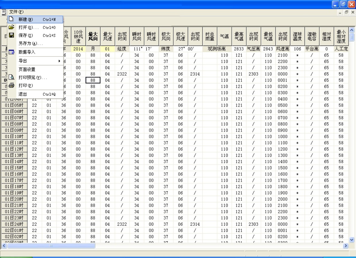 气象数据录入模块首先能够直接将新采集到的气象数据导入到录入界面当中(这些气象数据主要是温度、相对湿度、降水、日照以及风向风速等气象要素数据资料),在录入界面管理员可以根据需要将异常数据进行修改或删除等处理,然后点击保存将新数据存储到数据库当中,并且在录入界面管理员可以将数据重新以Excel或txt格式导出;而气候概况、灾情情况等文字信息则通过手动录入。其导入后界面如图7所示。