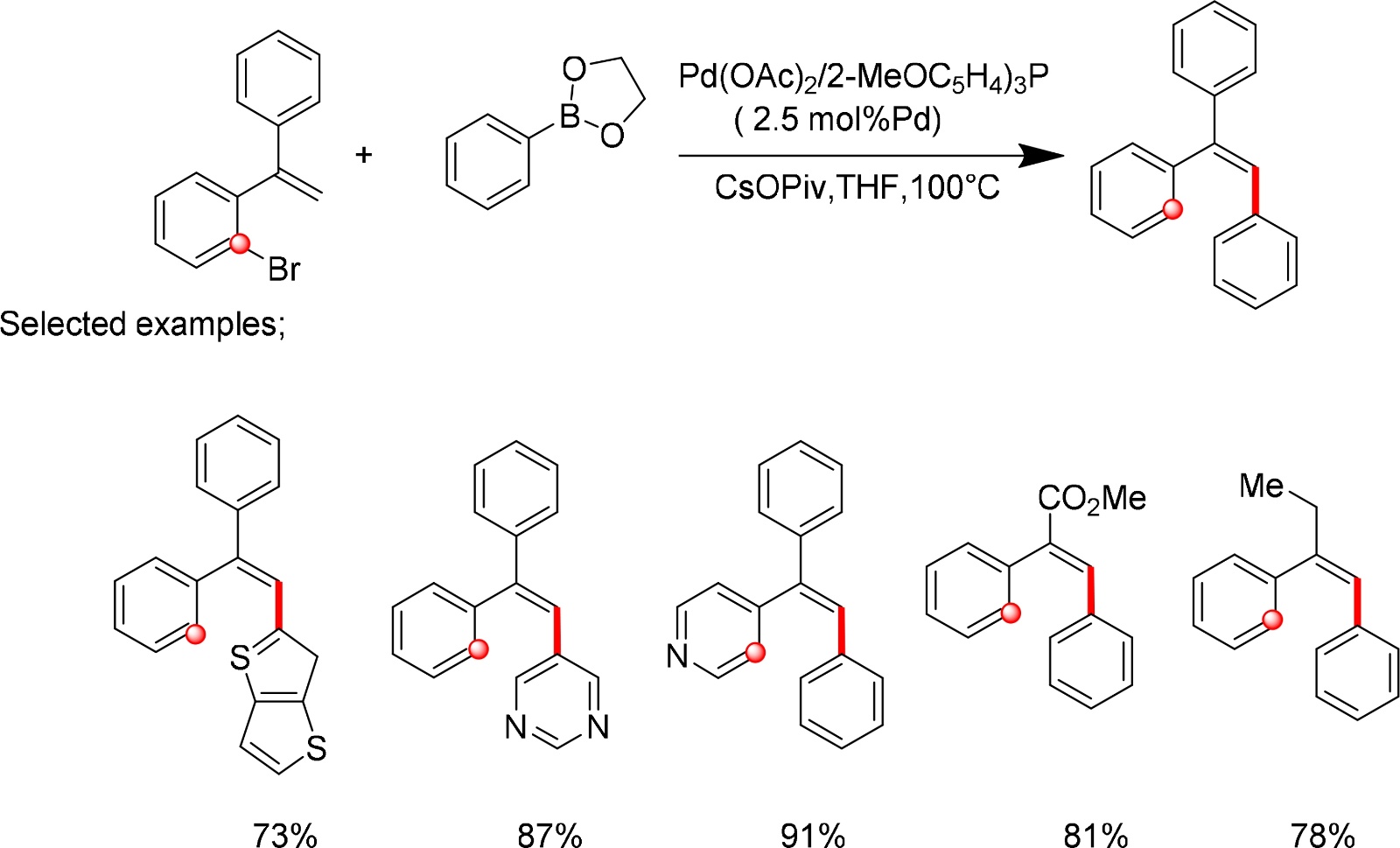 图2. 与芳基硼试剂偶联合成三取代烯烃