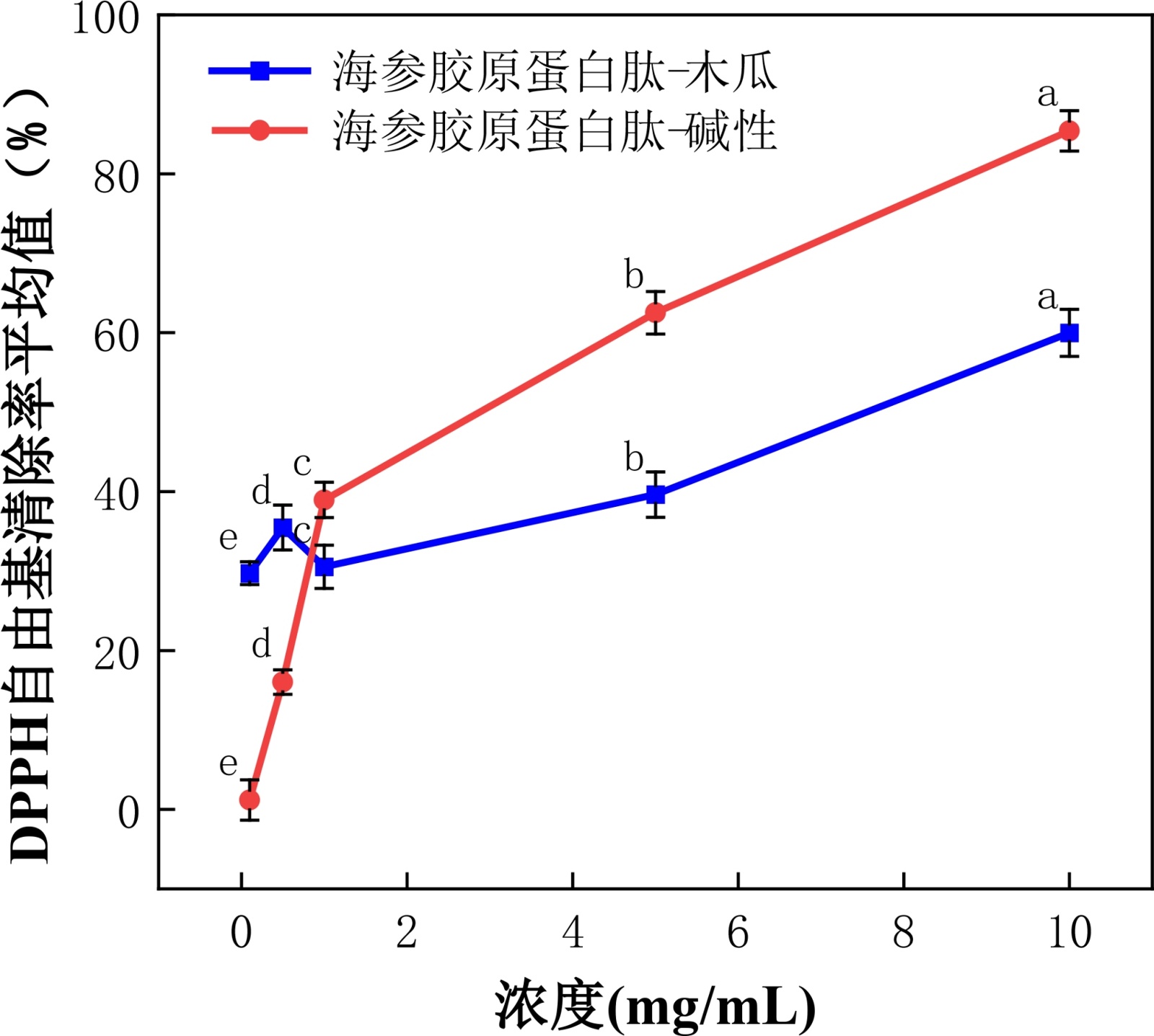图2. 测定海参胶原蛋白肽溶液DPPH自由基清除率