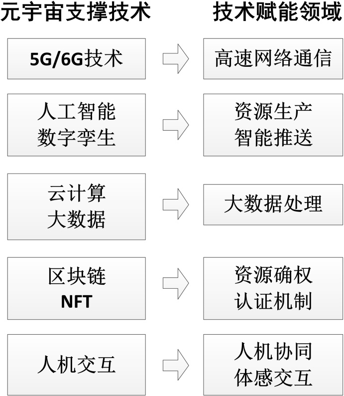 关于元宇宙的定义,目前学术界与产业界尚未形成统一定论,不同视角的解读呈现出多元特征:从技术层面看,元宇宙是整合区块链、人工智能、虚拟现实、物联网等技术的复合型互联网应用[4],属于集成多技术的超级数字媒介;从社会功能层面看,元宇宙是具备“娱乐、展示、社交、交易、创造”等多元社会功能的虚拟时空载体;从哲学层面看,元宇宙是人类“心智”与“想象”的延伸,是趋近“随心所欲”的拟真体验境界;从人身体验层面看,元宇宙是可为用户提供工作、生活具身体验的虚实融合世界[5]。综合多视角研究,本研究认为:元宇宙是整合区块链、人工智能、虚拟现实、5G/6G、物联网、人机交互等技术,构建的一种允许用户以数字身份参与的虚实融合数字社会生态。
